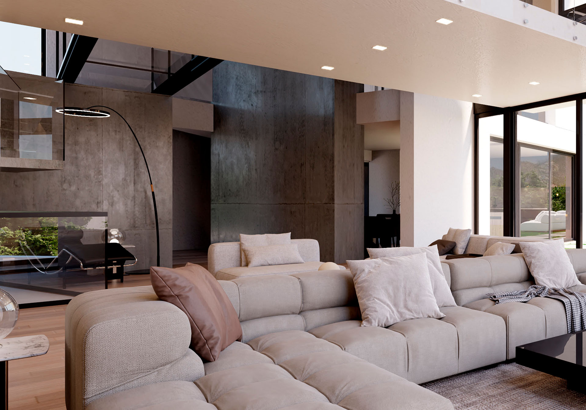 El tratamiento de la luz, tanto la natural gracias a las grandes cristaleras que inundan los espacios de día, como la artificial empotrada, integrada, casi naciendo del propio edificio, busca fundamentalmente potenciar esa sensación del espacio interior diluyéndose, fundiéndose, en el exterior, y este participa de todo el carácter general del edificio formando un todo continuo.