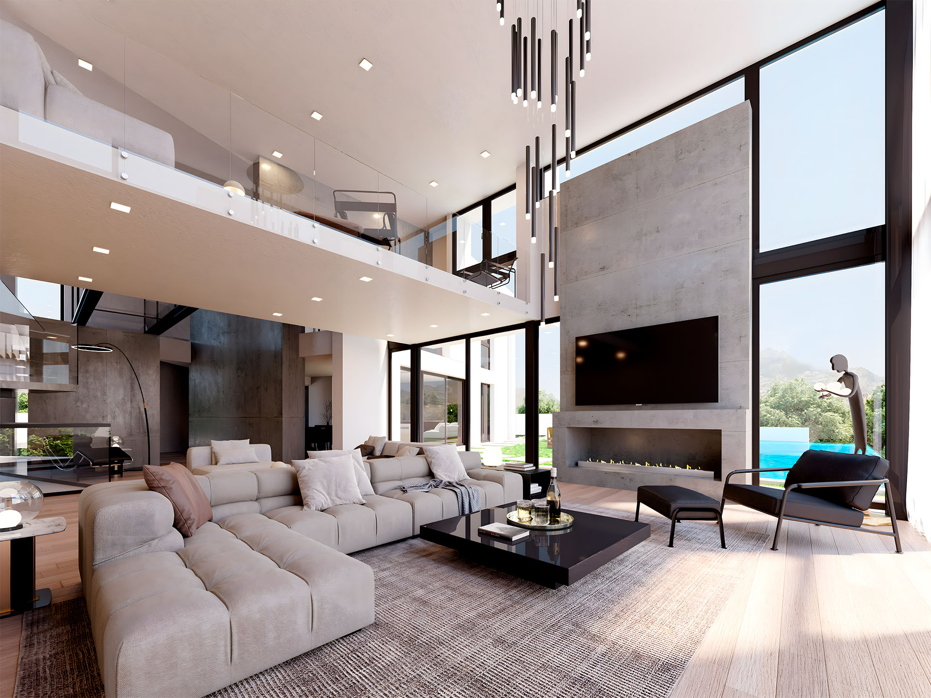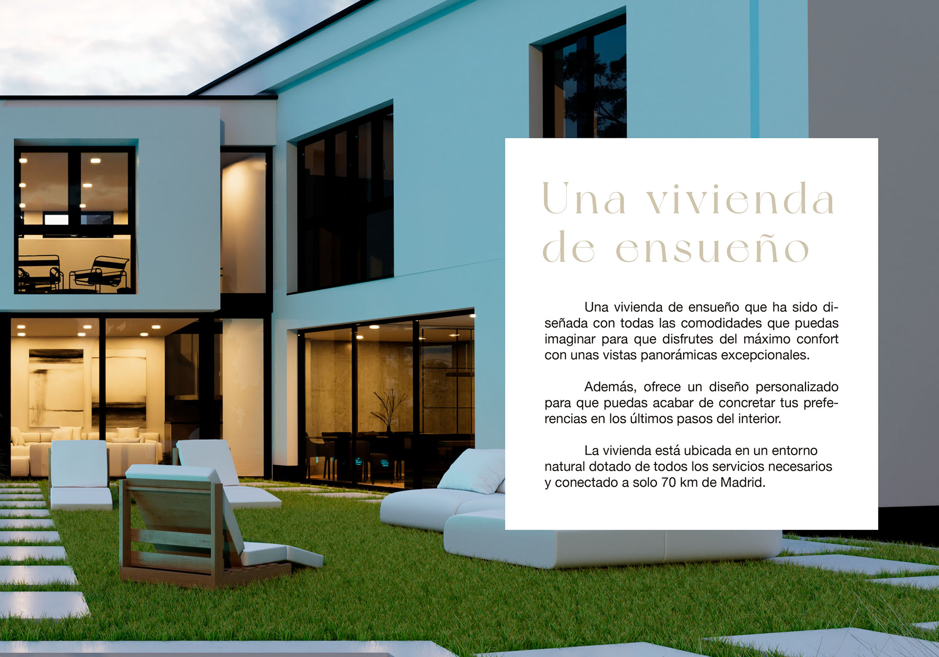 Villa de Lujo de obra nueva e independiente en Venta en la Urbanización de Los Angeles de San Rafael, en el Municipio de El Espinar, provincia de Segovia. Con una superficie construida de 520 m2 y una parcela de 2.000 m2, este inmueble destaca por su diseño adaptado a las condiciones topográficas de la parcela.