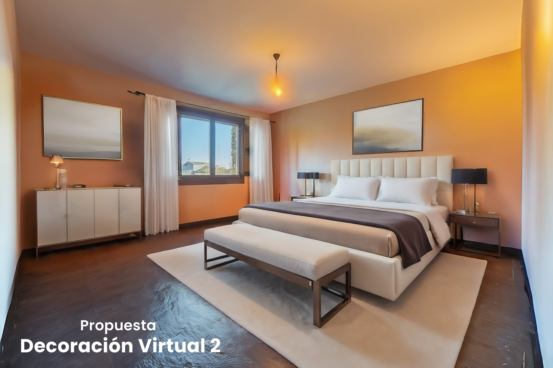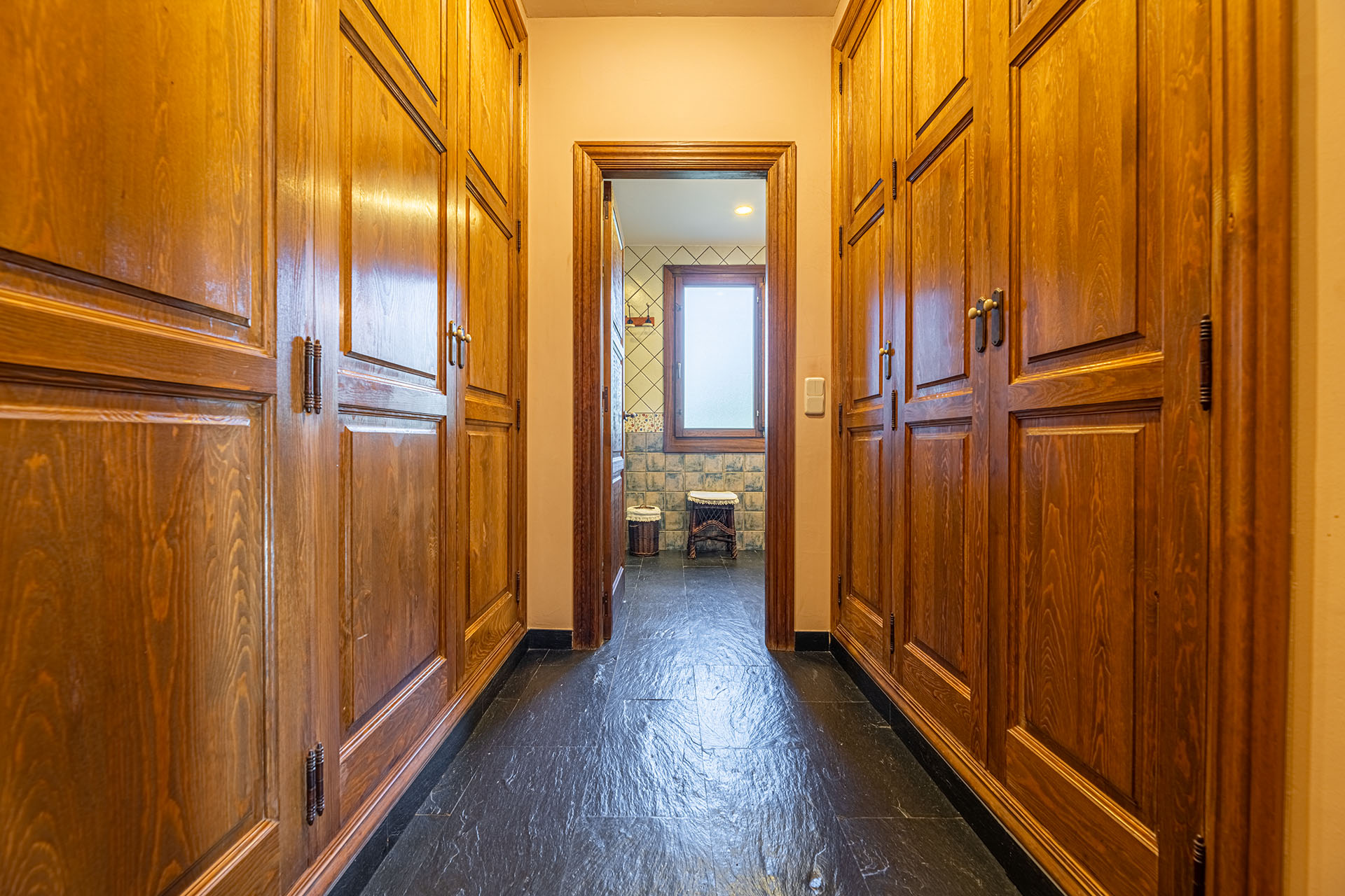 Adentrándonos en su interior, nos encontramos con un universo de elegancia y confort. En la primera planta, un gran salón comedor con techo de doble altura se convierte en el epicentro de la vida familiar, invitando a contemplar las vistas desde su amplio ventanal y terrazas contiguas que a su vez harán de las tardes de verano un lugar mágico desde el que disfrutar de las noches estrelladas. Tres dormitorios, cada uno con su propio baño en suite y armarios empotrados, ofrecen un oasis de paz y privacidad. El dormitorio principal, además, cuenta con un generoso vestidor para satisfacer los deseos más exigentes. Una cocina de estilo clásico, espacio de lavandería y un aseo de cortesía completan los espacios de esta planta, ofreciendo una armonía perfecta entre funcionalidad y belleza.