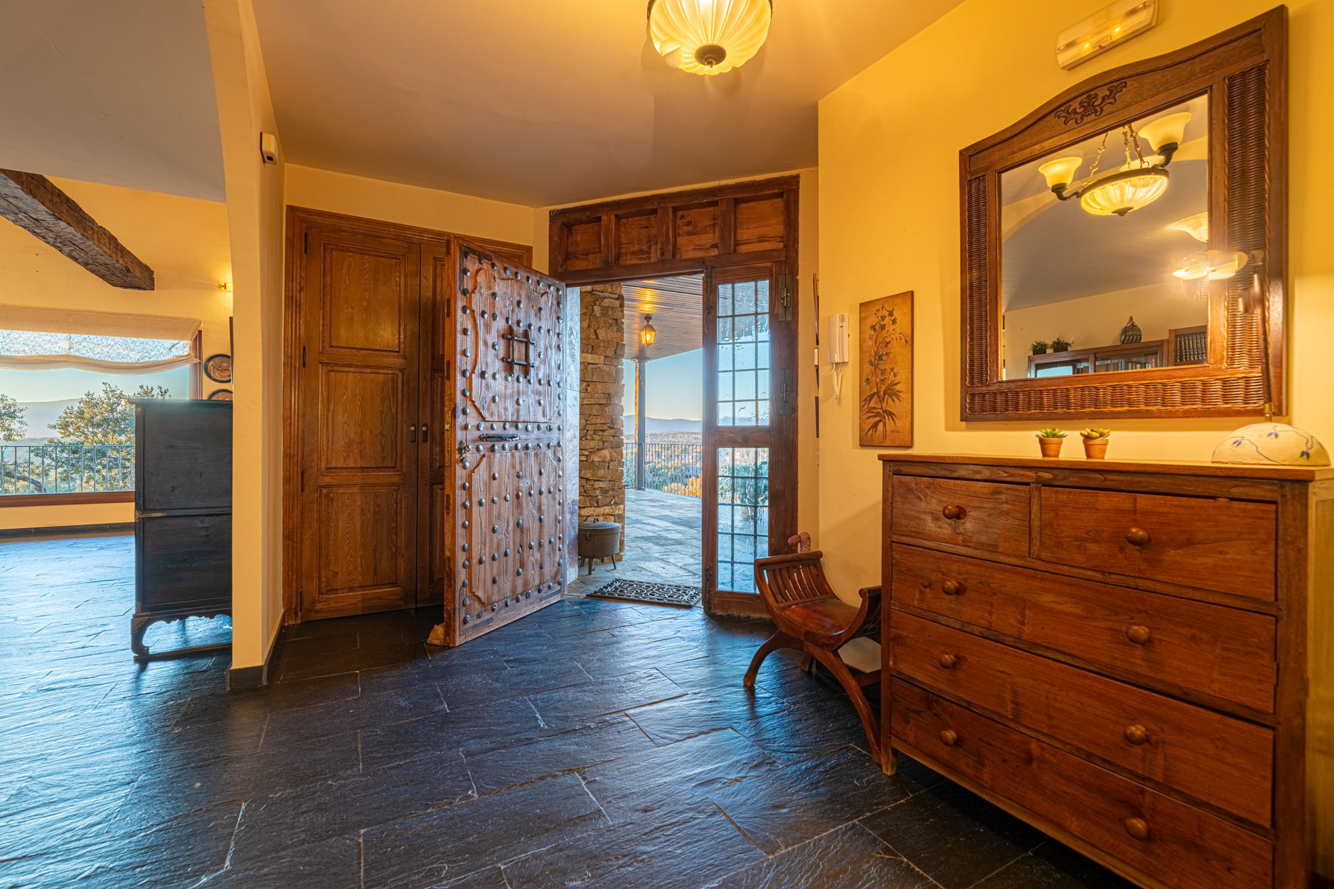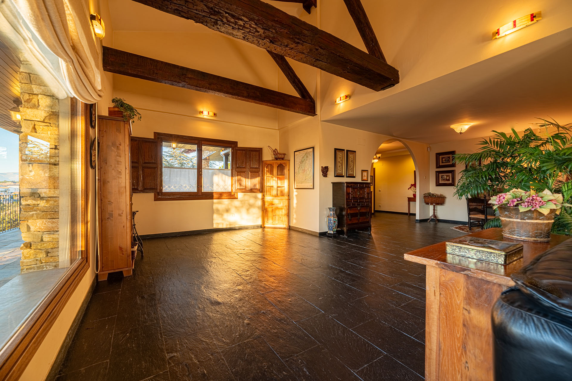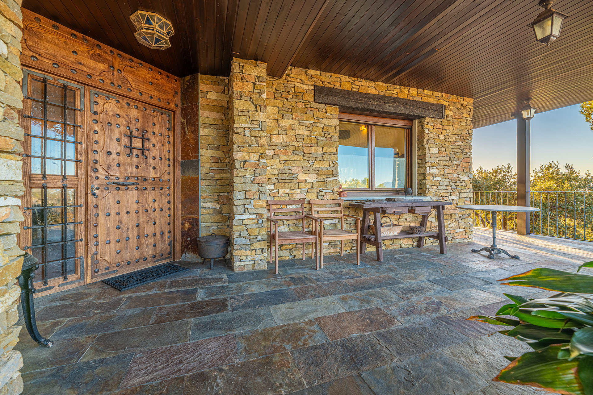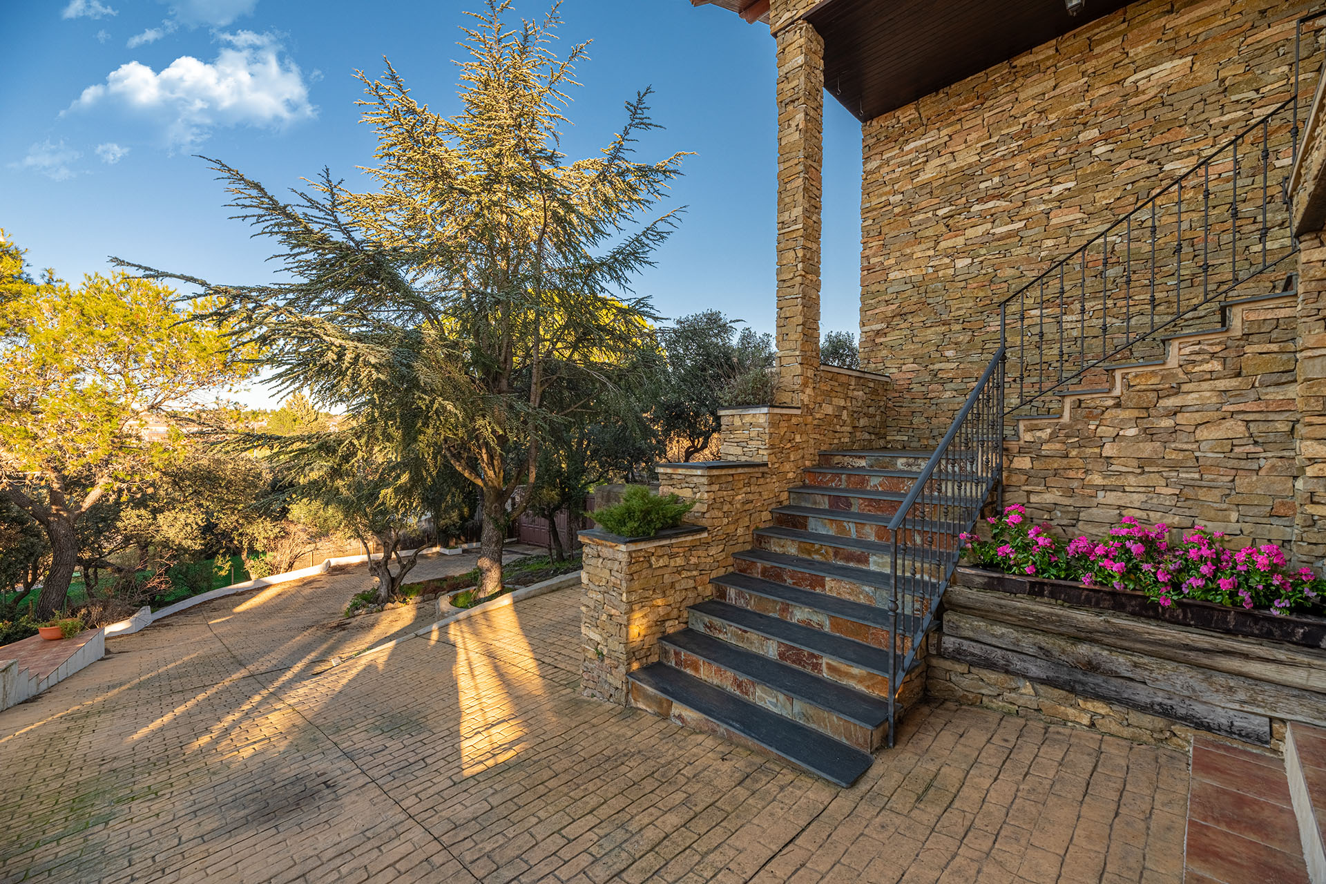 Los materiales que abrazan esta morada son testimonios de su excelencia. Una construcción completamente de hormigón, revestida con piedras de Teruel en forma de lajas, ofrece una base sólida y duradera. El suelo de pizarra de Segovia en la primera planta añade un toque de elegancia y distinción, mientras que las ventanas de madera de iroko y los detalles de las puertas de paso y armarios en madera maciza de pino, estos últimos revestidos de madera de roble reflejan la artesanía más exquisita. El portón de entrada, traído de Talavera de la Reina, es una puerta de acceso a un mundo de lujo y distinción.
