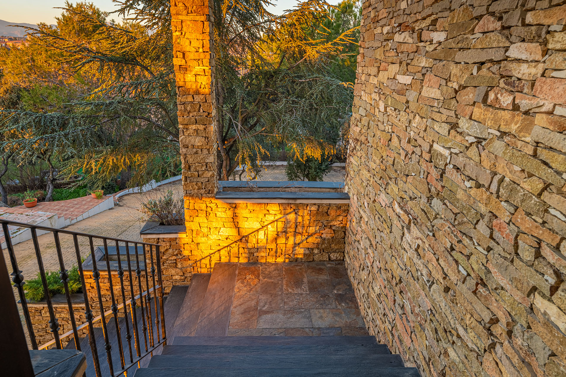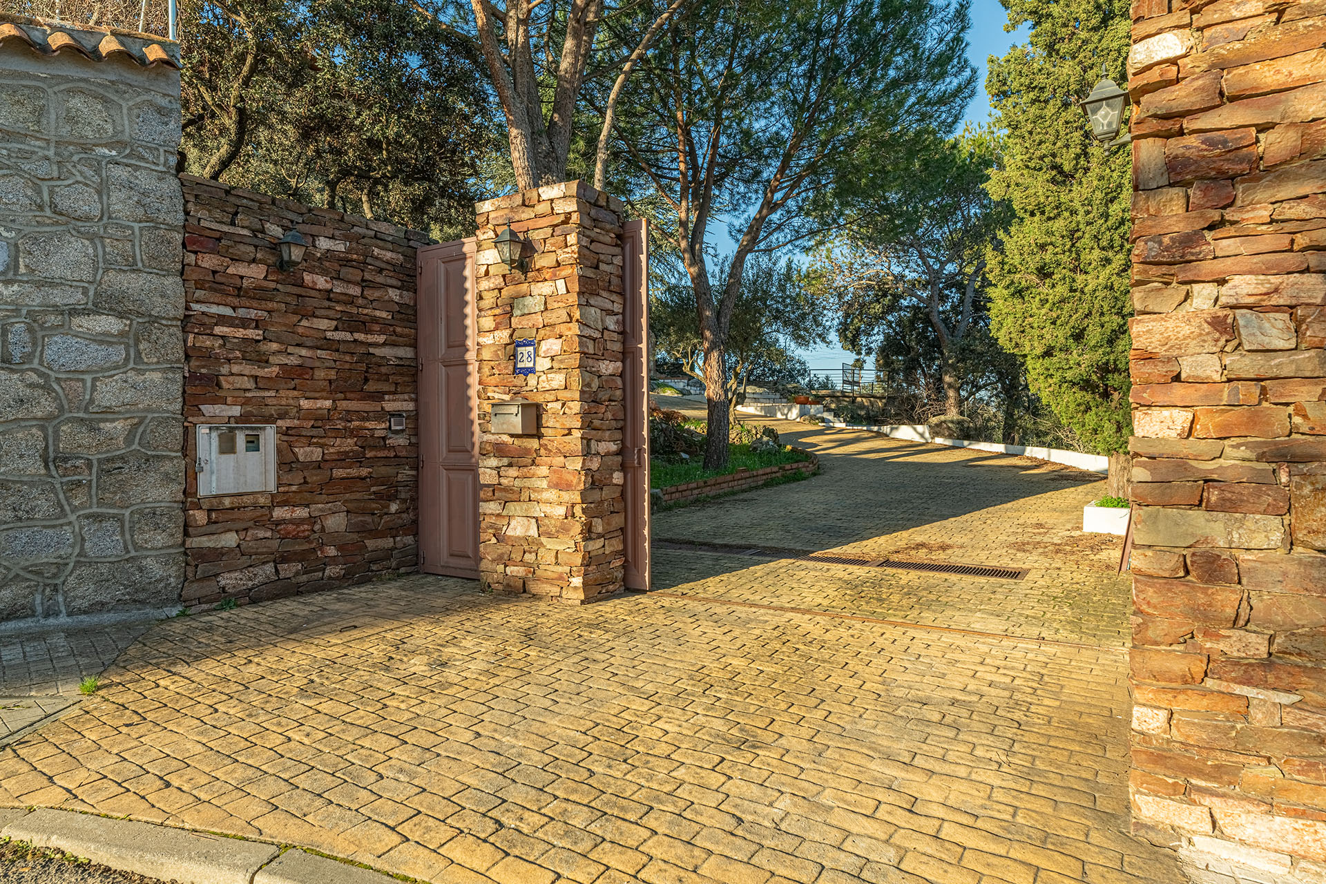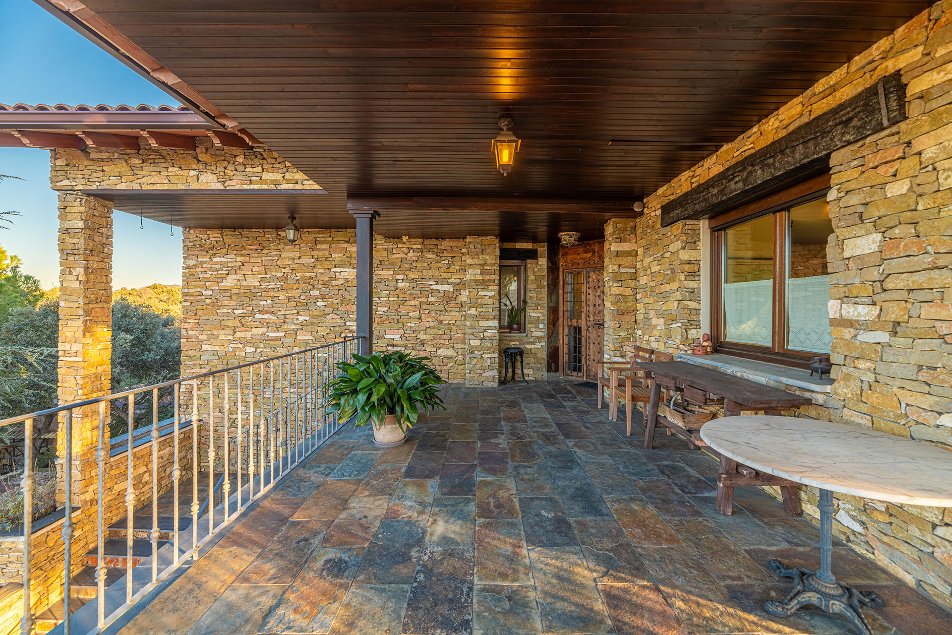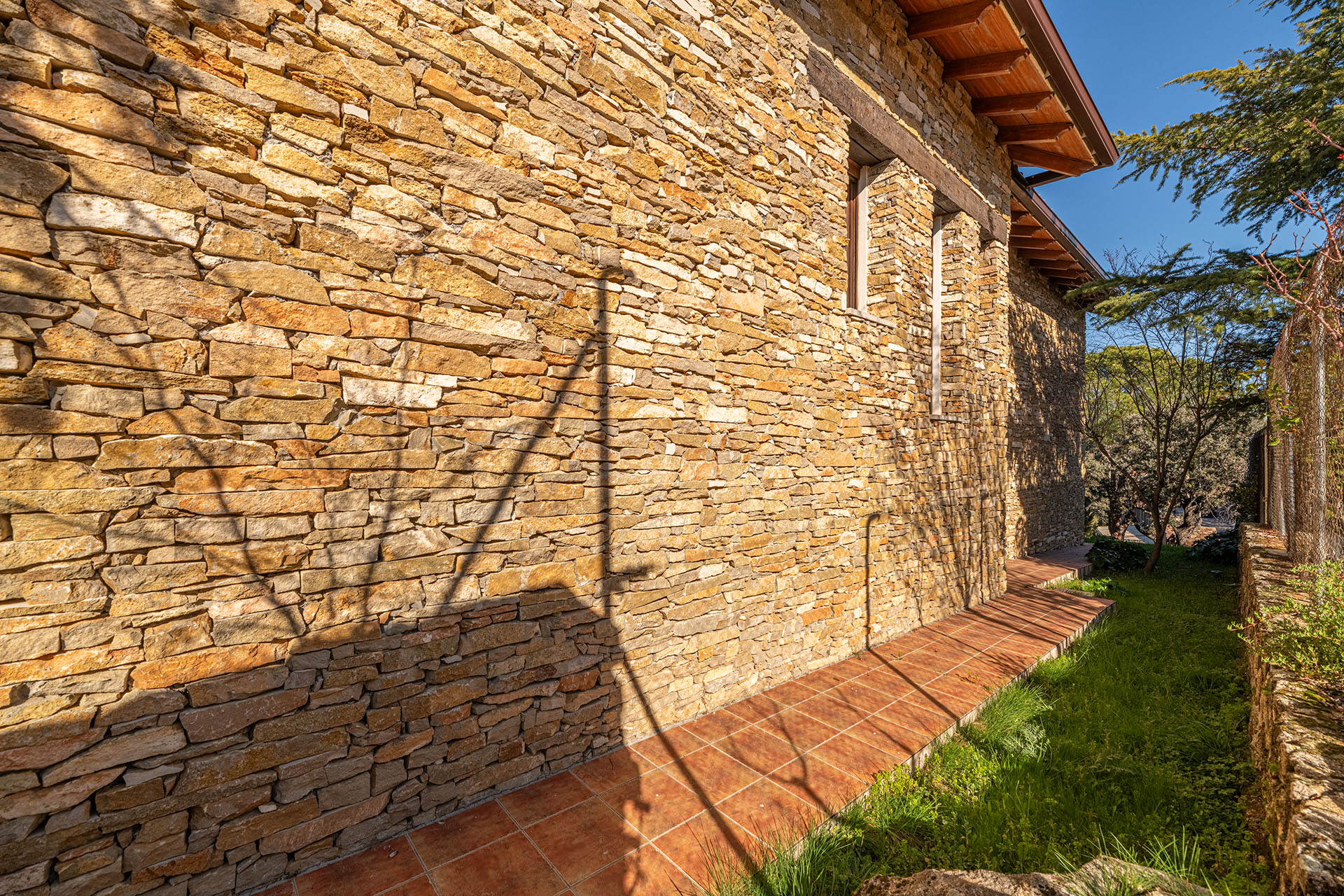 Los materiales que abrazan esta morada son testimonios de su excelencia. Una construcción completamente de hormigón, revestida con piedras de Teruel en forma de lajas, ofrece una base sólida y duradera. El suelo de pizarra de Segovia en la primera planta añade un toque de elegancia y distinción, mientras que las ventanas de madera de iroko y los detalles de las puertas de paso y armarios en madera maciza de pino, estos últimos revestidos de madera de roble reflejan la artesanía más exquisita. El portón de entrada, traído de Talavera de la Reina, es una puerta de acceso a un mundo de lujo y distinción.