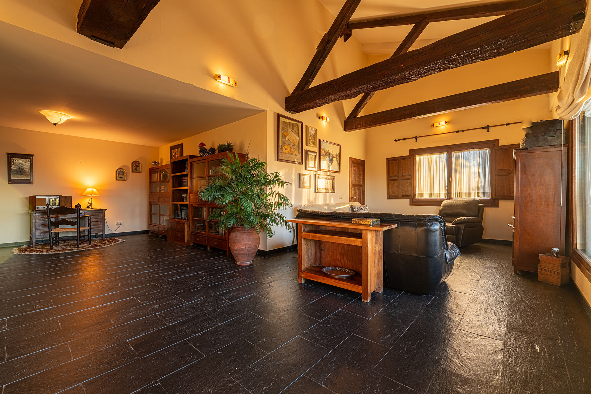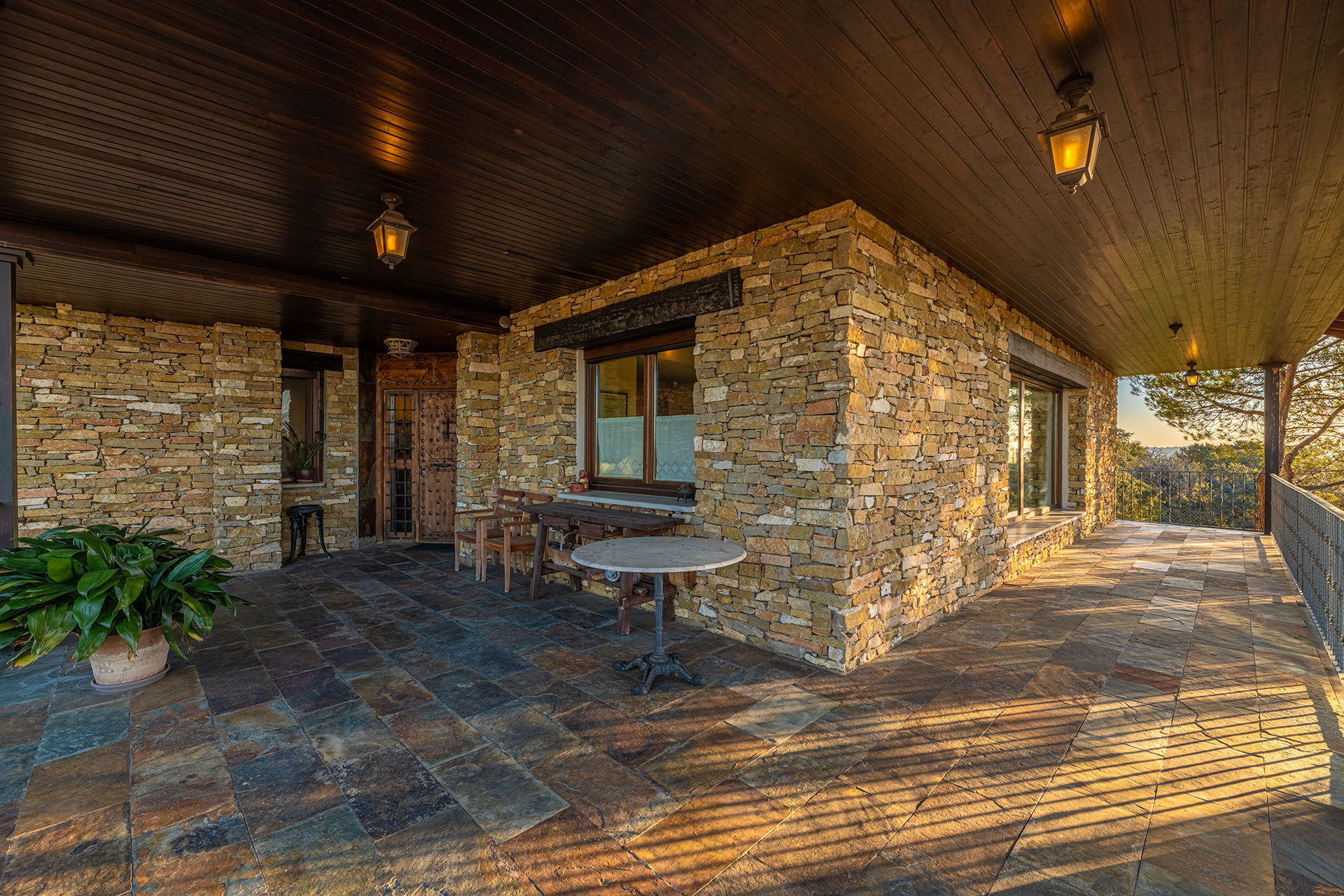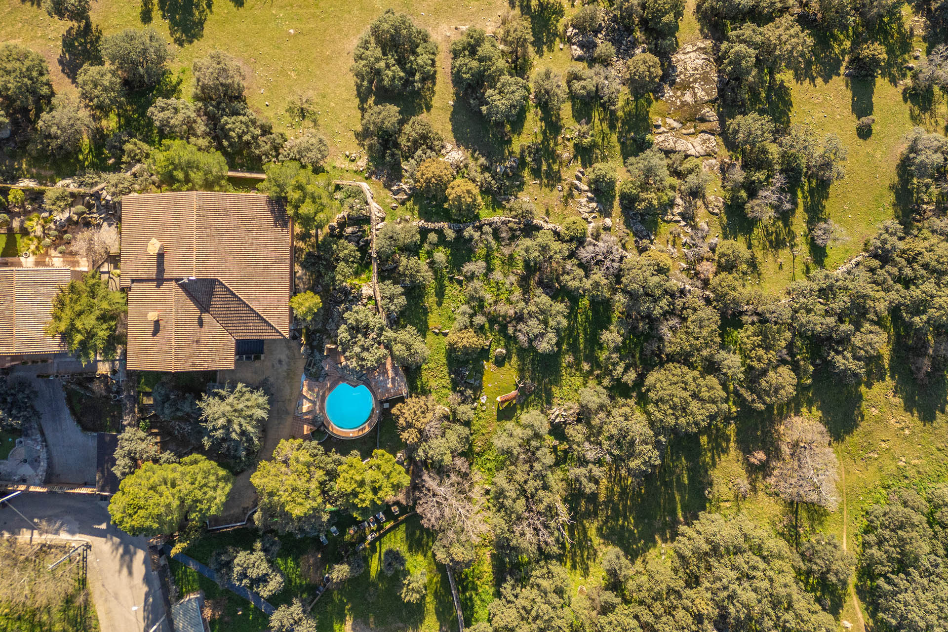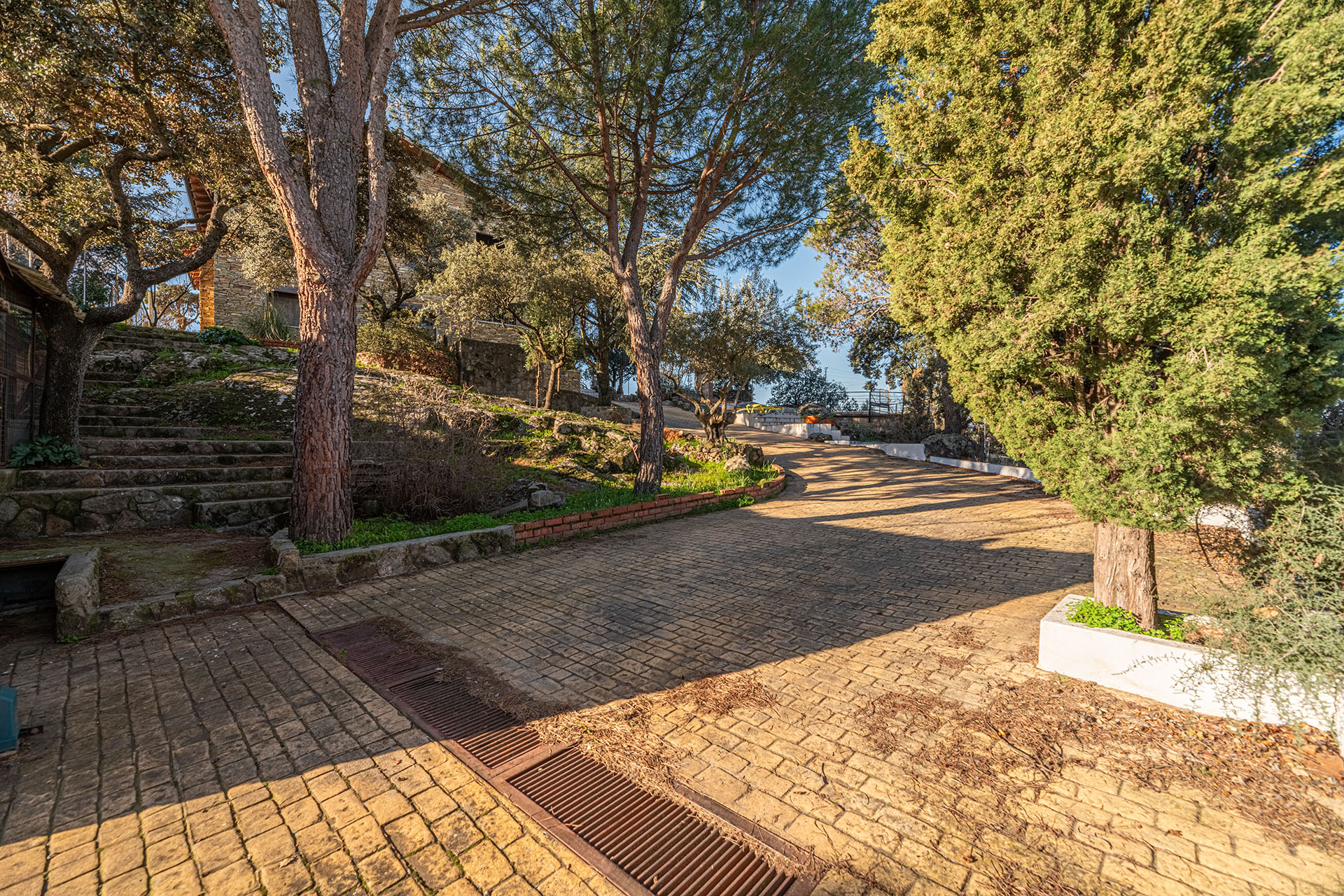 Los materiales que abrazan esta morada son testimonios de su excelencia. Una construcción completamente de hormigón, revestida con piedras de Teruel en forma de lajas, ofrece una base sólida y duradera. El suelo de pizarra de Segovia en la primera planta añade un toque de elegancia y distinción, mientras que las ventanas de madera de iroko y los detalles de las puertas de paso y armarios en madera maciza de pino, estos últimos revestidos de madera de roble reflejan la artesanía más exquisita. El portón de entrada, traído de Talavera de la Reina, es una puerta de acceso a un mundo de lujo y distinción.