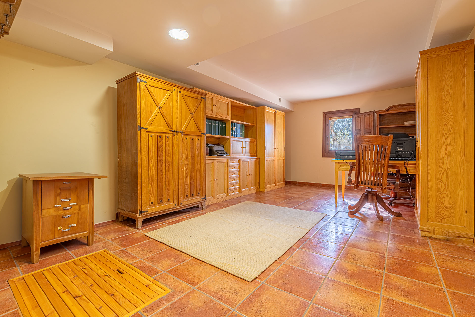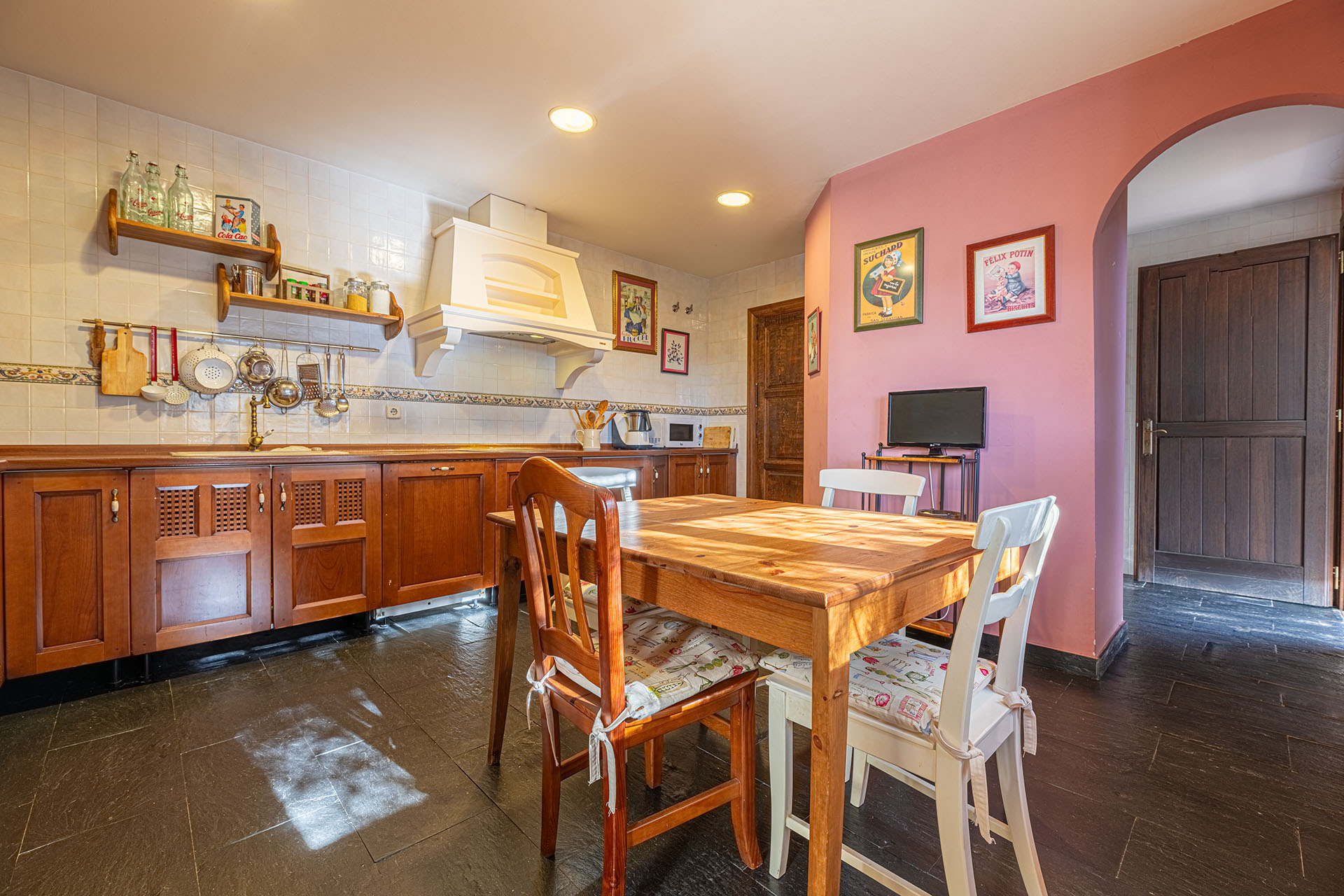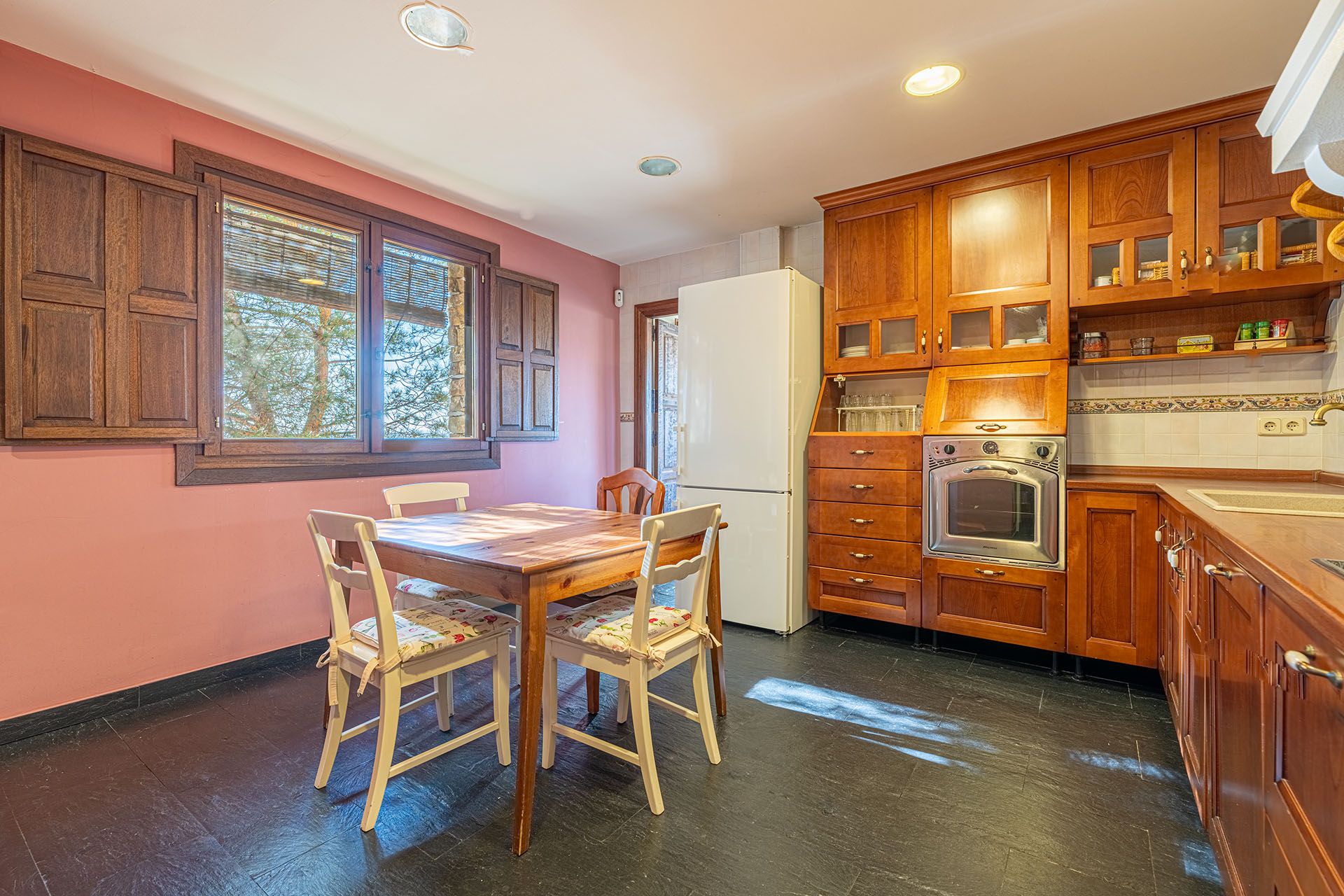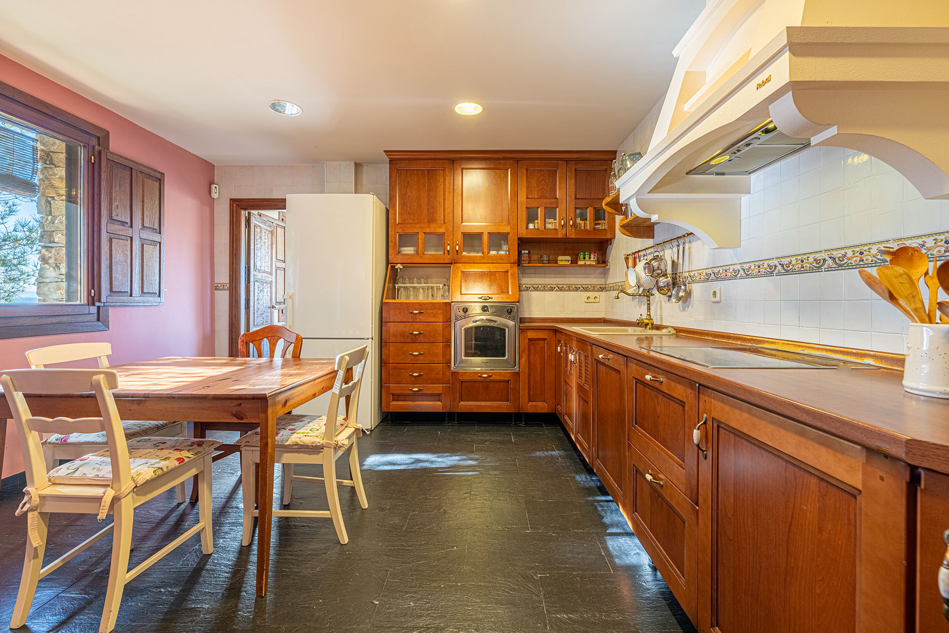 En la planta baja, otro gran espacio de convivencia nos recibe con los brazos abiertos. Un salón comedor con cocina estilo rústico, presidido por una chimenea que irradia calidez y confort, invita a disfrutar de momentos inolvidables en compañía de seres queridos. Tres dormitorios adicionales, un baño, una lavandería y la sala de calderas completan este santuario terrenal, ofreciendo un ambiente acogedor y familiar en cada rincón.