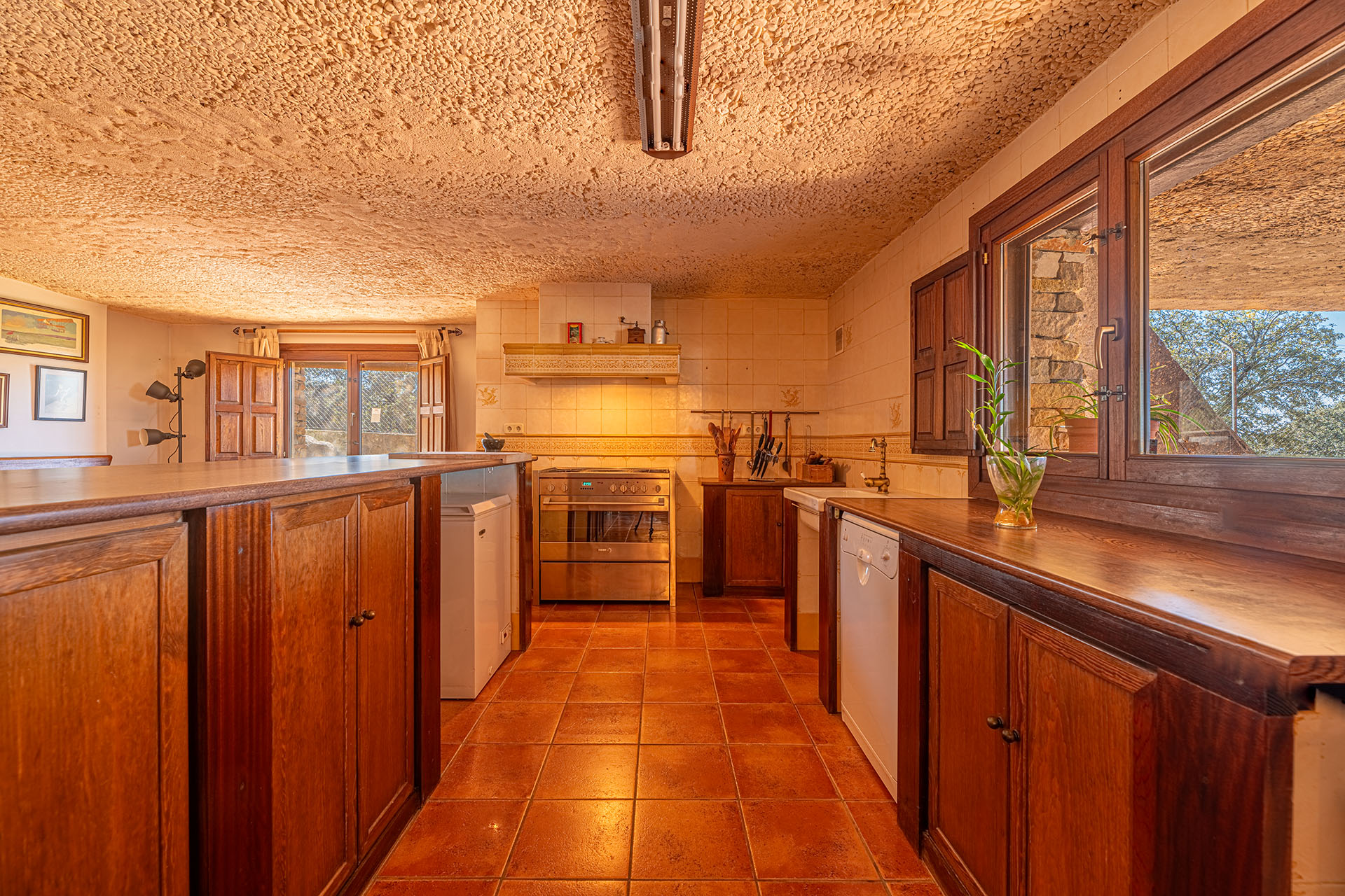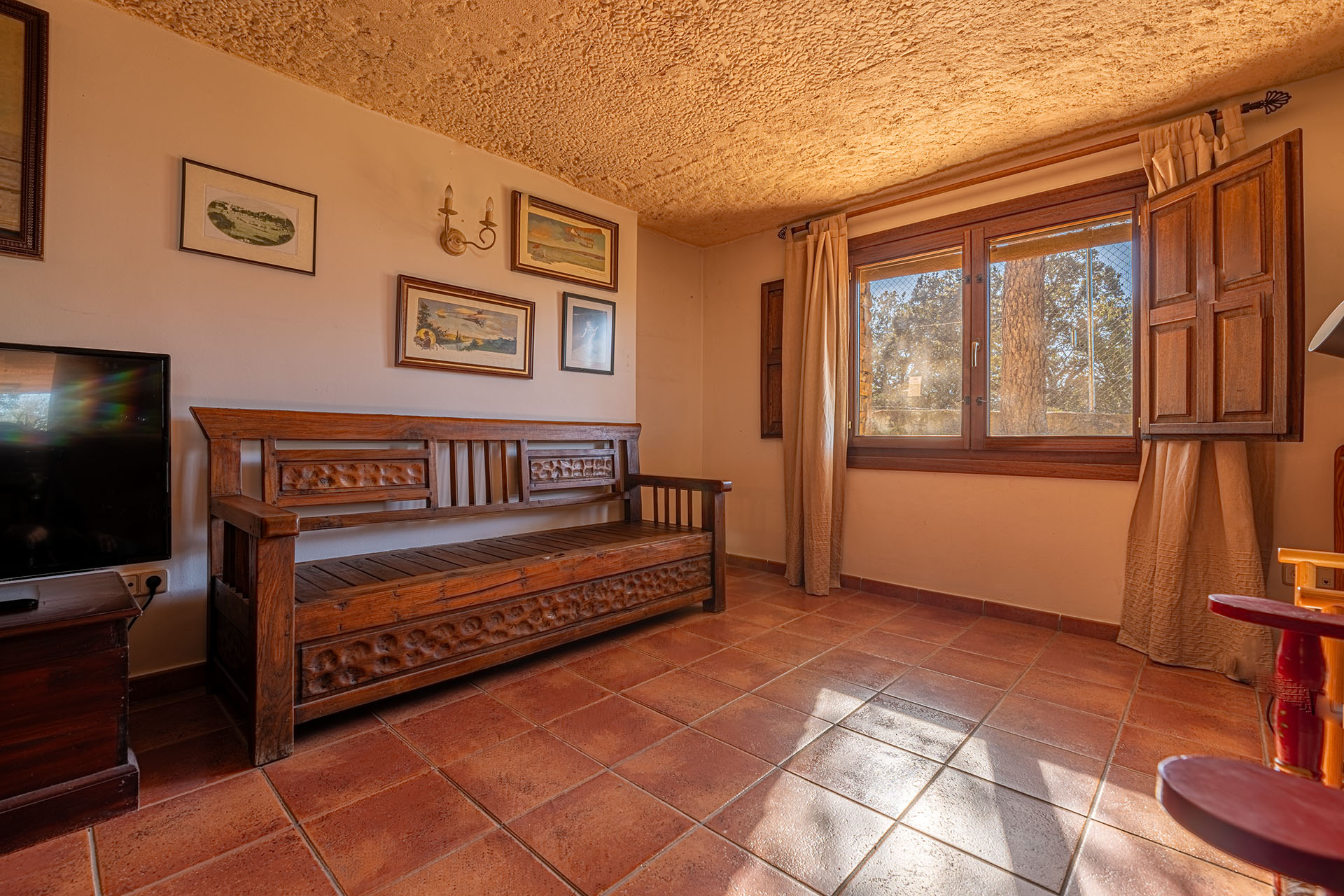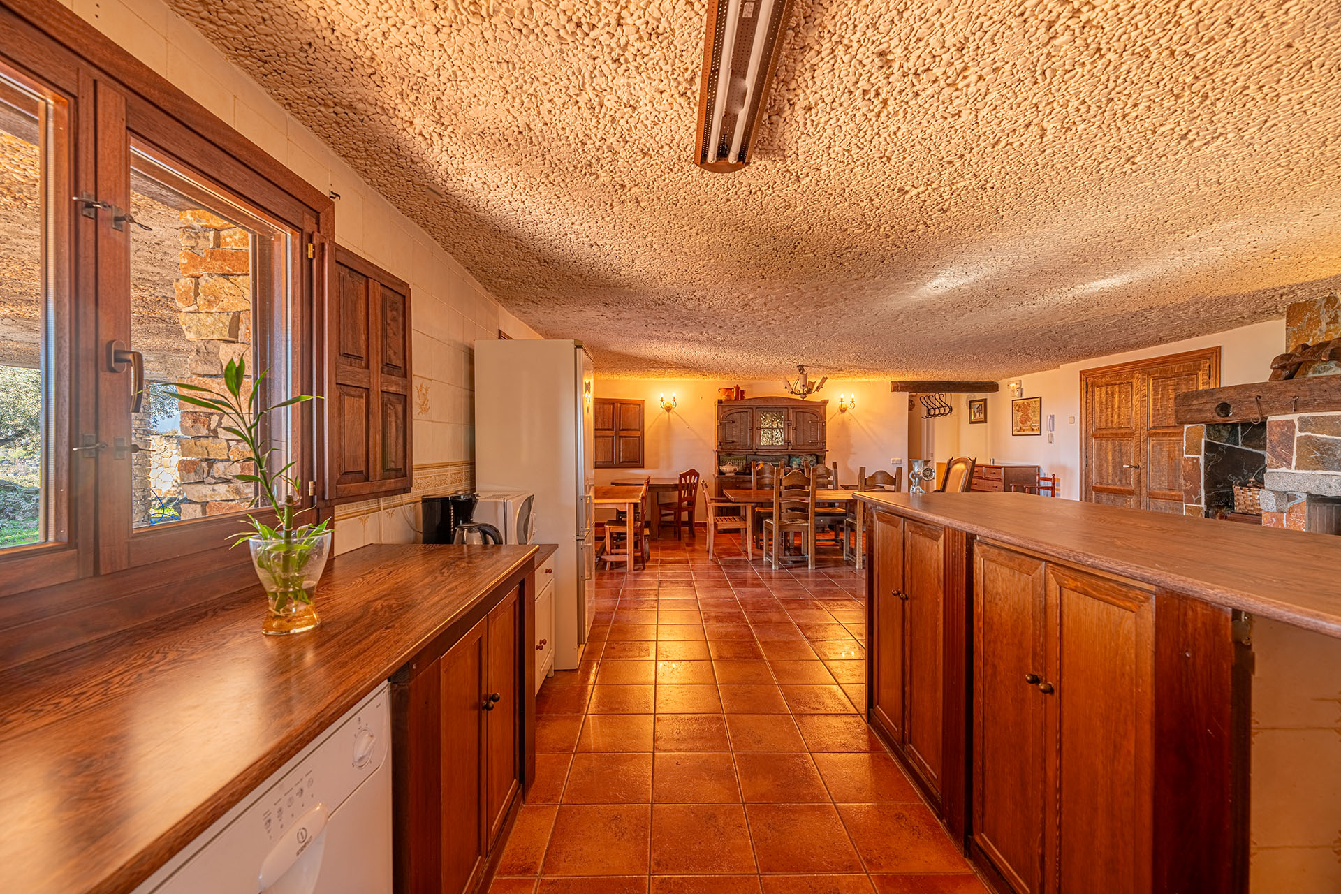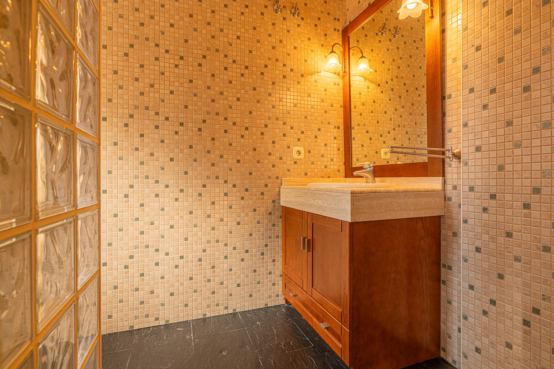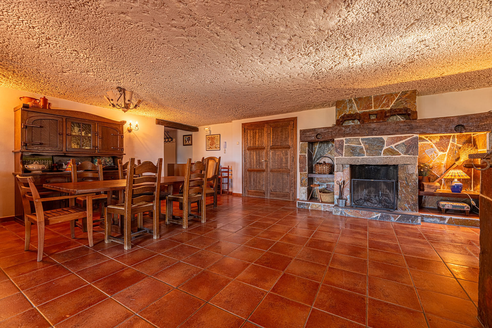 En la planta baja, otro gran espacio de convivencia nos recibe con los brazos abiertos. Un salón comedor con cocina estilo rústico, presidido por una chimenea que irradia calidez y confort, invita a disfrutar de momentos inolvidables en compañía de seres queridos. Tres dormitorios adicionales, un baño, una lavandería y la sala de calderas completan este santuario terrenal, ofreciendo un ambiente acogedor y familiar en cada rincón.