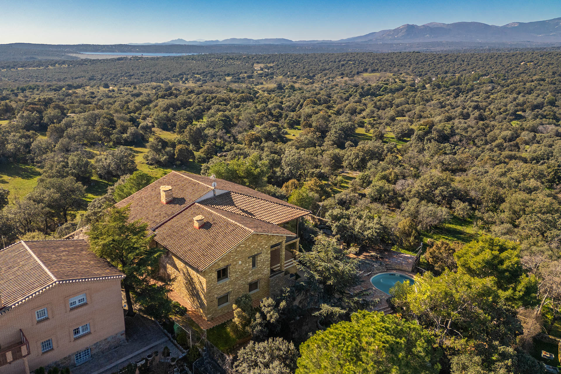 Ubicada en suelo residencial pero delimitando el inicio del terreno rústico, esta residencia ofrece una ventaja incomparable sobre el resto. Desde sus alturas, acariciada por la majestuosidad de la Sierra de Guadarrama, la imponente presencia del Monasterio del Escorial y la serenidad del embalse de Valmayor, esta morada se erige como un testigo silencioso de la grandeza natural que la rodea. Cada amanecer, cada atardecer, regala un espectáculo que cautiva el alma y despierta los sentidos, sumergiendo al espectador en un mar de emociones y belleza.