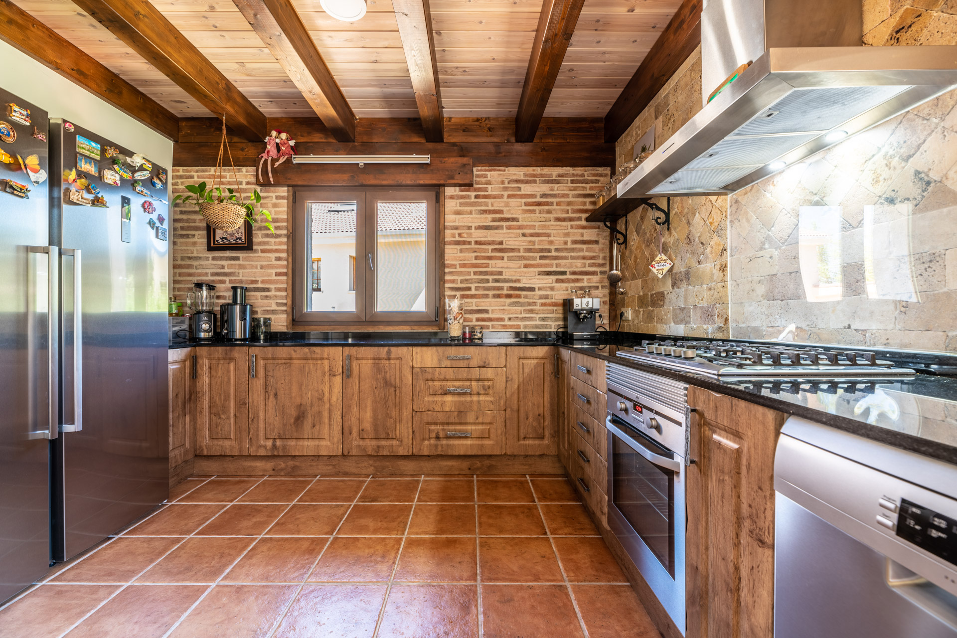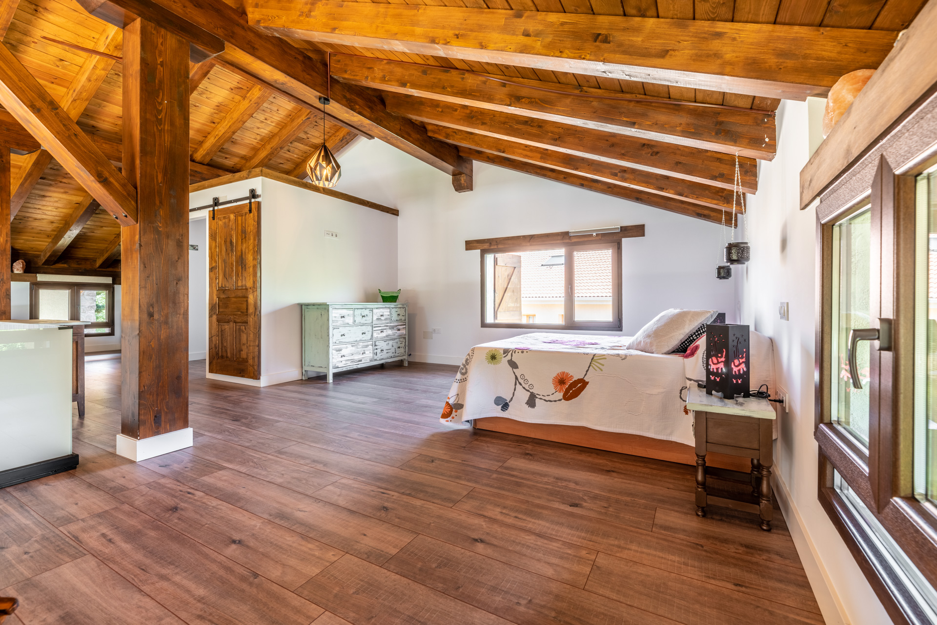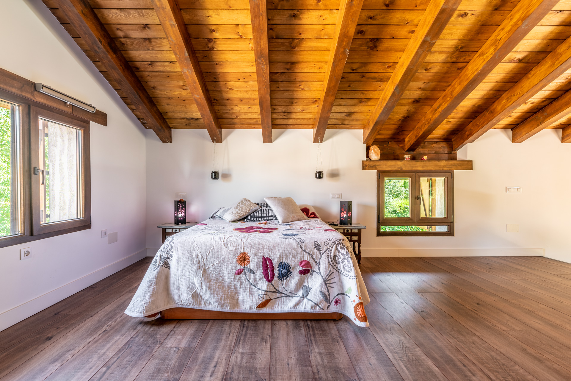 Muros perimetrales de más de 60 cm de grosor así como cubierta de 35 cm, lo que sumado a la gran calidad de la carpintería de la marca alemana Kommerling con cristales rellenos de gas argón, la convierten en una casa altamente eficiente. El gasto en calefacción será mínimo y el confort máximo.