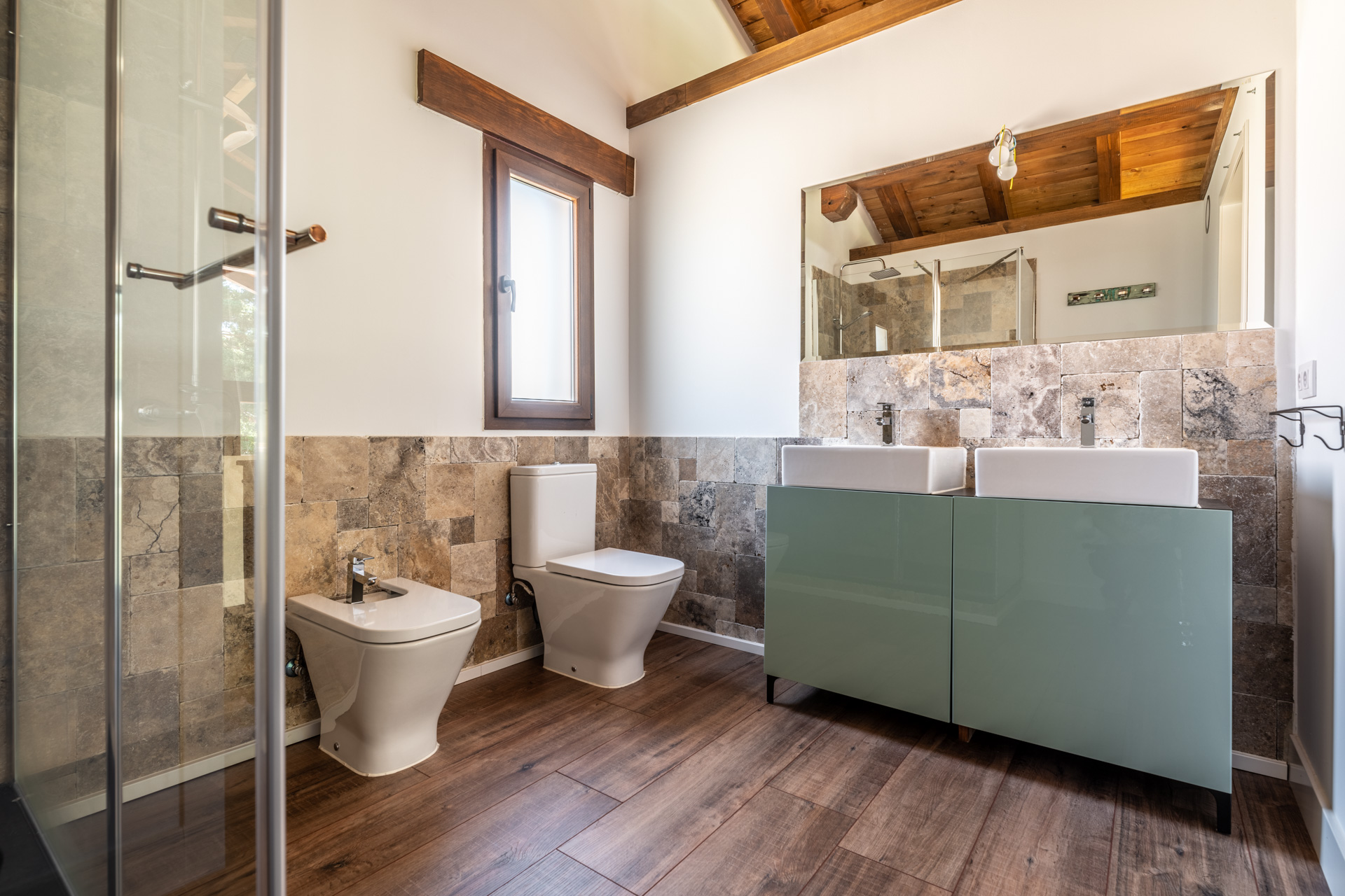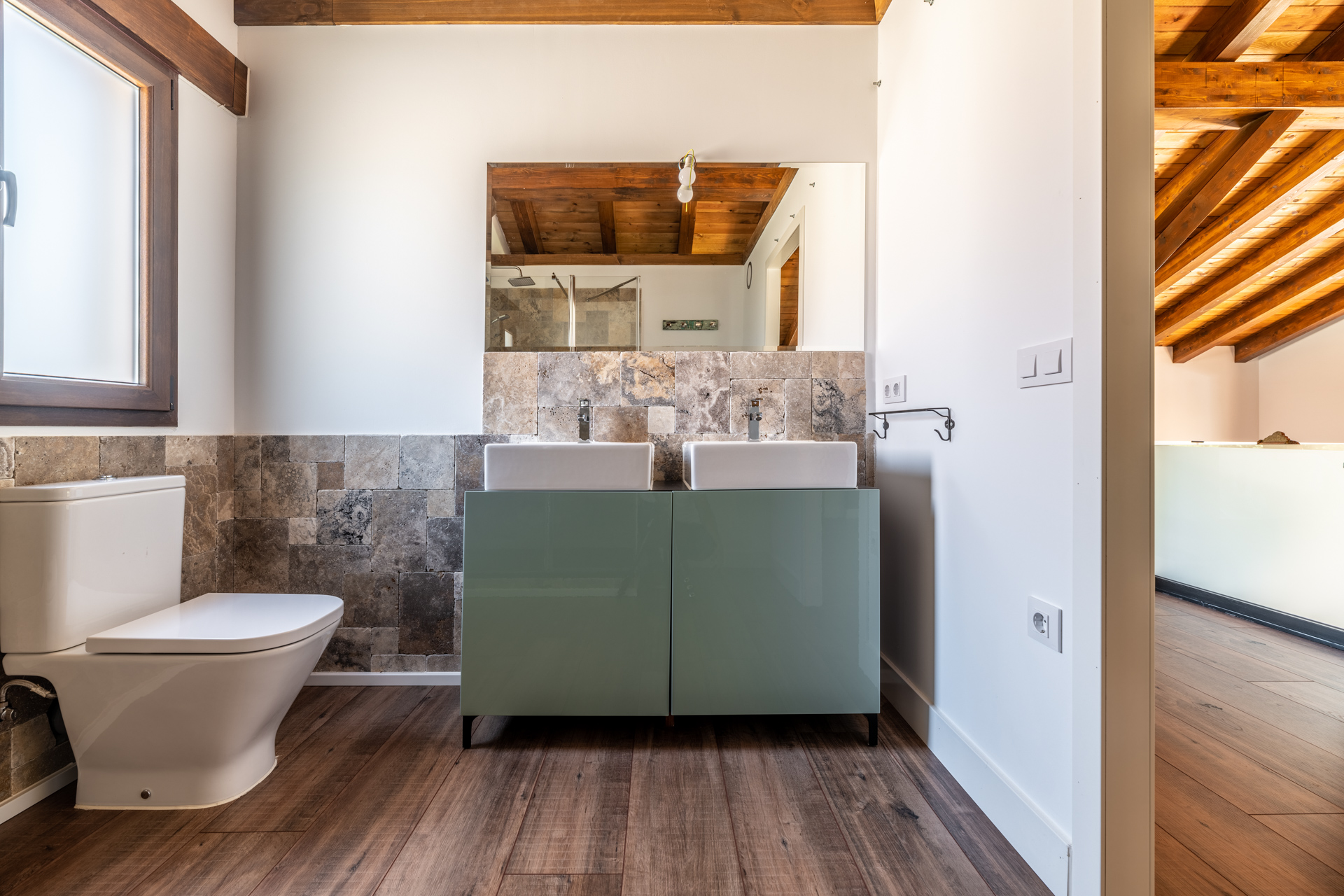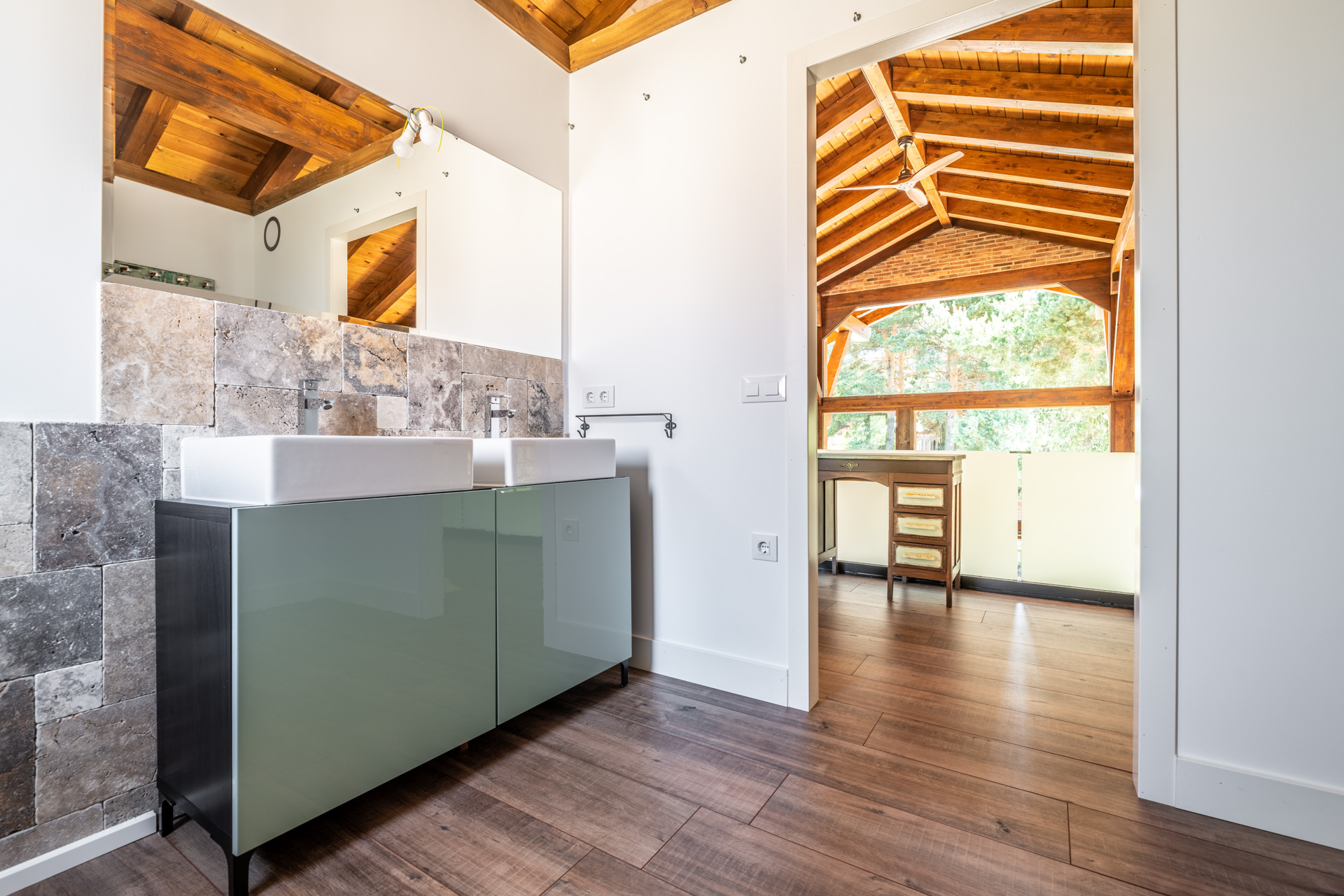 Muros perimetrales de más de 60 cm de grosor así como cubierta de 35 cm, lo que sumado a la gran calidad de la carpintería de la marca alemana Kommerling con cristales rellenos de gas argón, la convierten en una casa altamente eficiente. El gasto en calefacción será mínimo y el confort máximo.