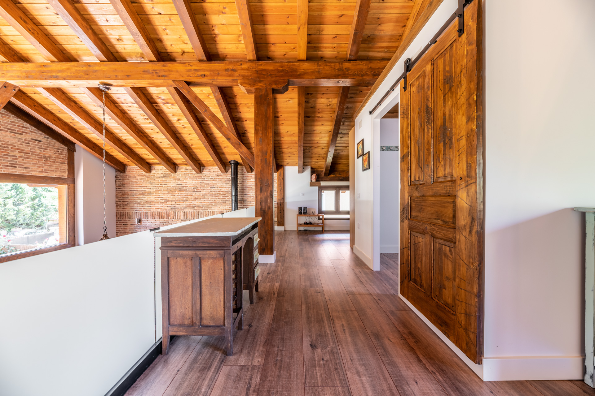 Subiendo a la segunda planta nos encontramos el dormitorio principal el cual cuenta con una amplia barandilla de cristal que sirve como mirador hacia la planta inferior. En este mismo nivel tenemos el baño principal de diseño, así como un amplio vestidor, el cual podría destinarse a un cuarto dormitorio ya que se han dejado todas las pre-instalaciones de llaves de luz y tomas de corriente.