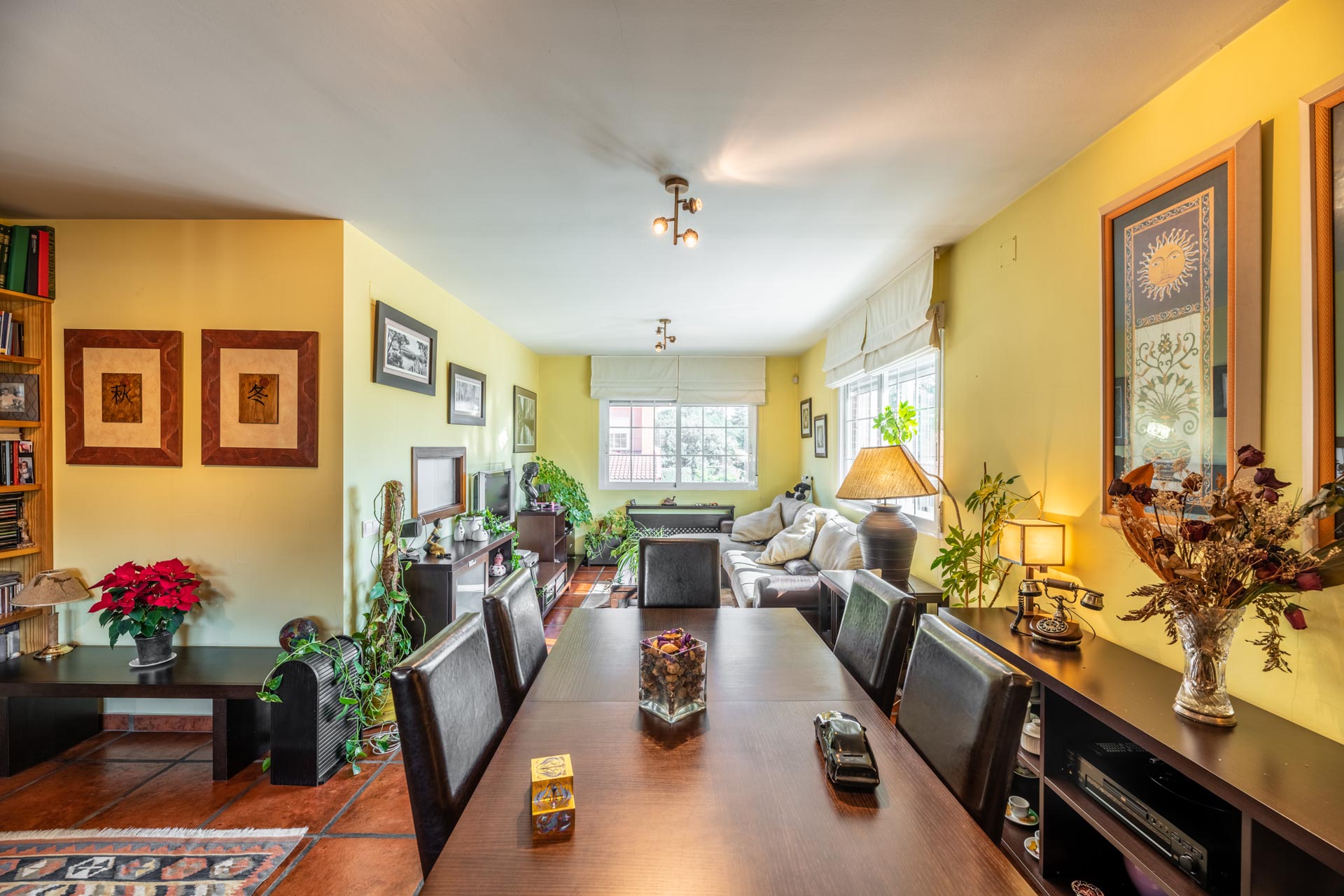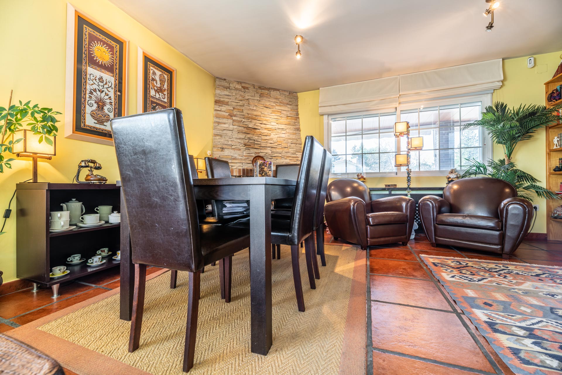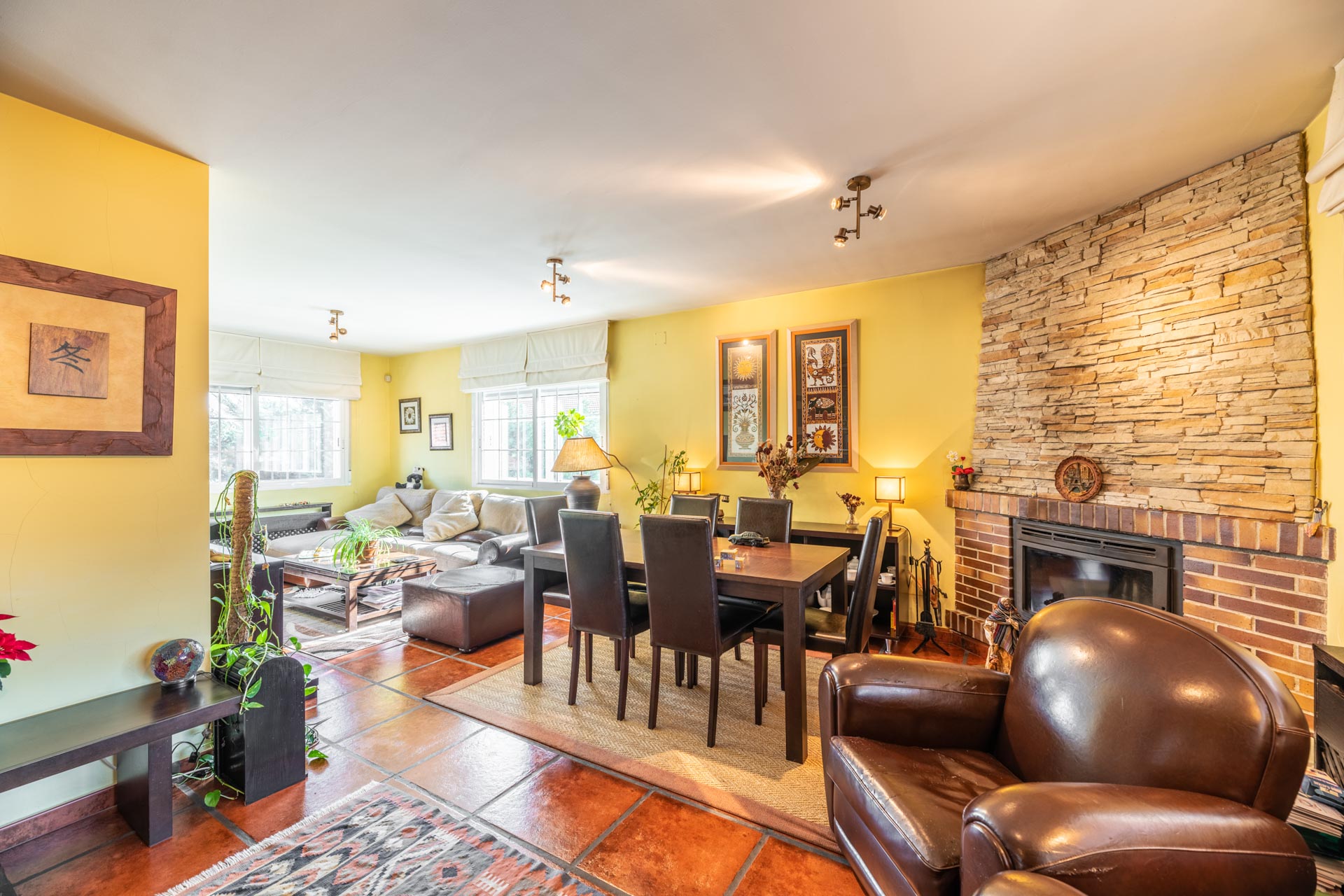 Una vez dentro de la vivienda, en la planta Principal, tenemos el Salón comedor, muy luminoso a todas las horas del día debido a la 3 distintas orientaciones de sus ventanas. La casa prescinde de aire acondicionado, ya que en la zona, no es necesario por sus agradables y frescas temperaturas de las noches de verano. Sin embargo, el salón si que cuenta con una chimenea tipo cassett para hacer de esta estancia un espacio intimo y acogedor en los días de invierno.