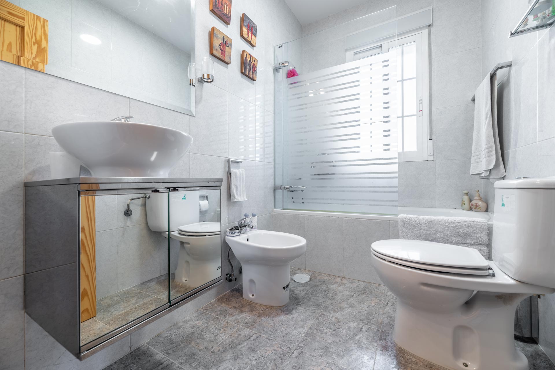 Un aseo de cortesía, un baño, así como 3 dormitorios, uno de ellos (el principal) con otro baño en suite, completan la planta principal de la vivienda. Todas las ventanas cuentan con DOBLE ventana tipo climalit, así como contraventanas de seguridad tipo «mallorquina».