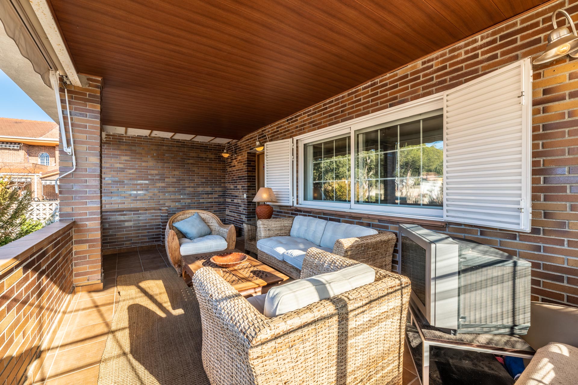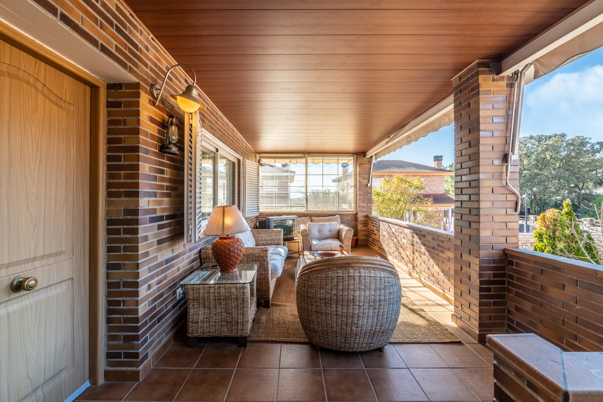 Accediendo a la vivienda, nos encontramos un espectacular y resguardado porche de 25m2, donde incluso, en los días de invierno, será un lugar donde poder sentarte a tomar un café mientras te relajas leyendo un libro.