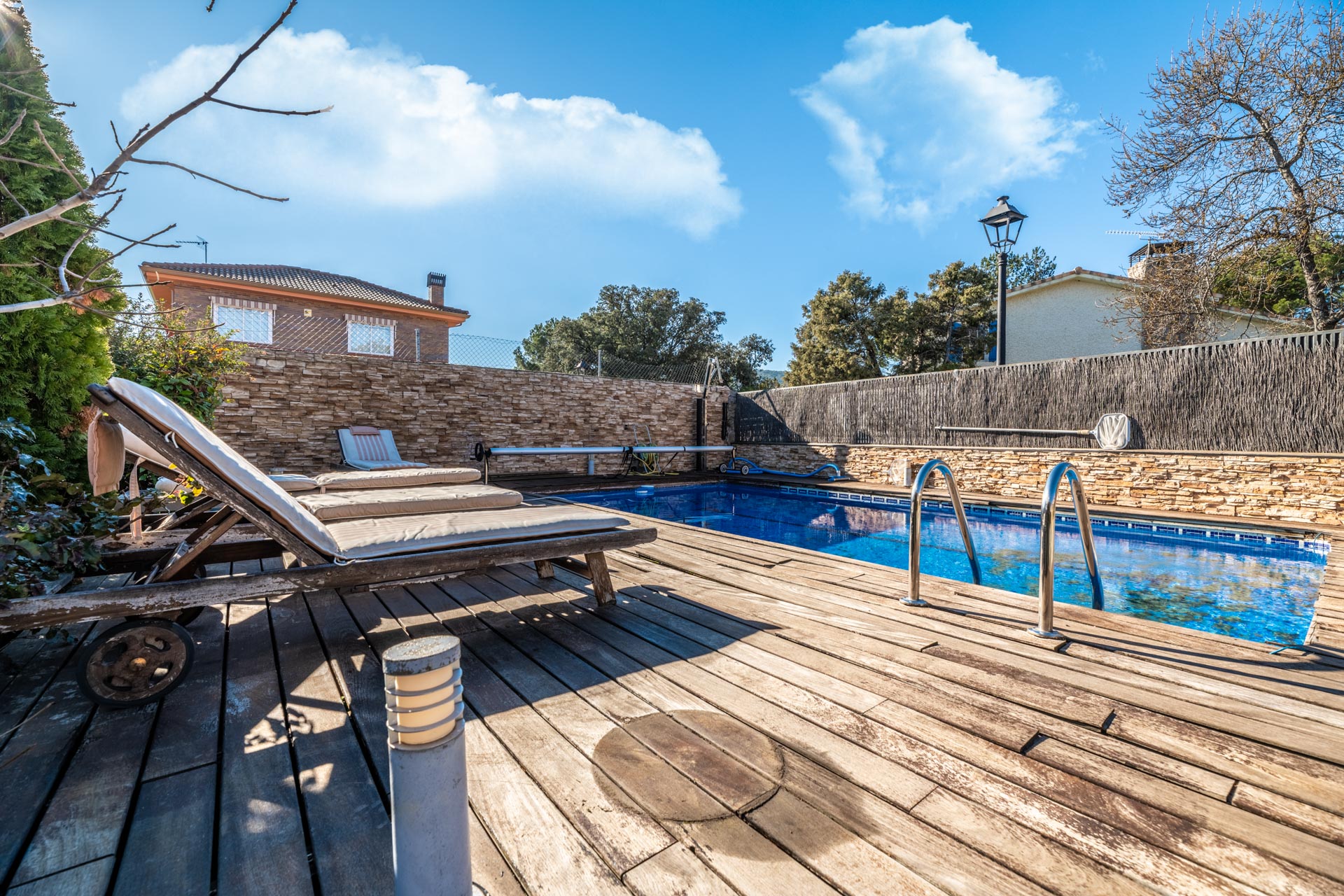 CASA EN LA SIERRA DE MADRID AMUEBLADA CON PISCINA CLIMATIZADA y VIVIENDA PRINCIPAL EN UNA SOLA PLANTA. JACUZZI, SAUNA FINLANDESA, GIMNASIO, ZONA DE JUEGOS, OFICINA Y HAB. DE INVITADOS en Planta -1.