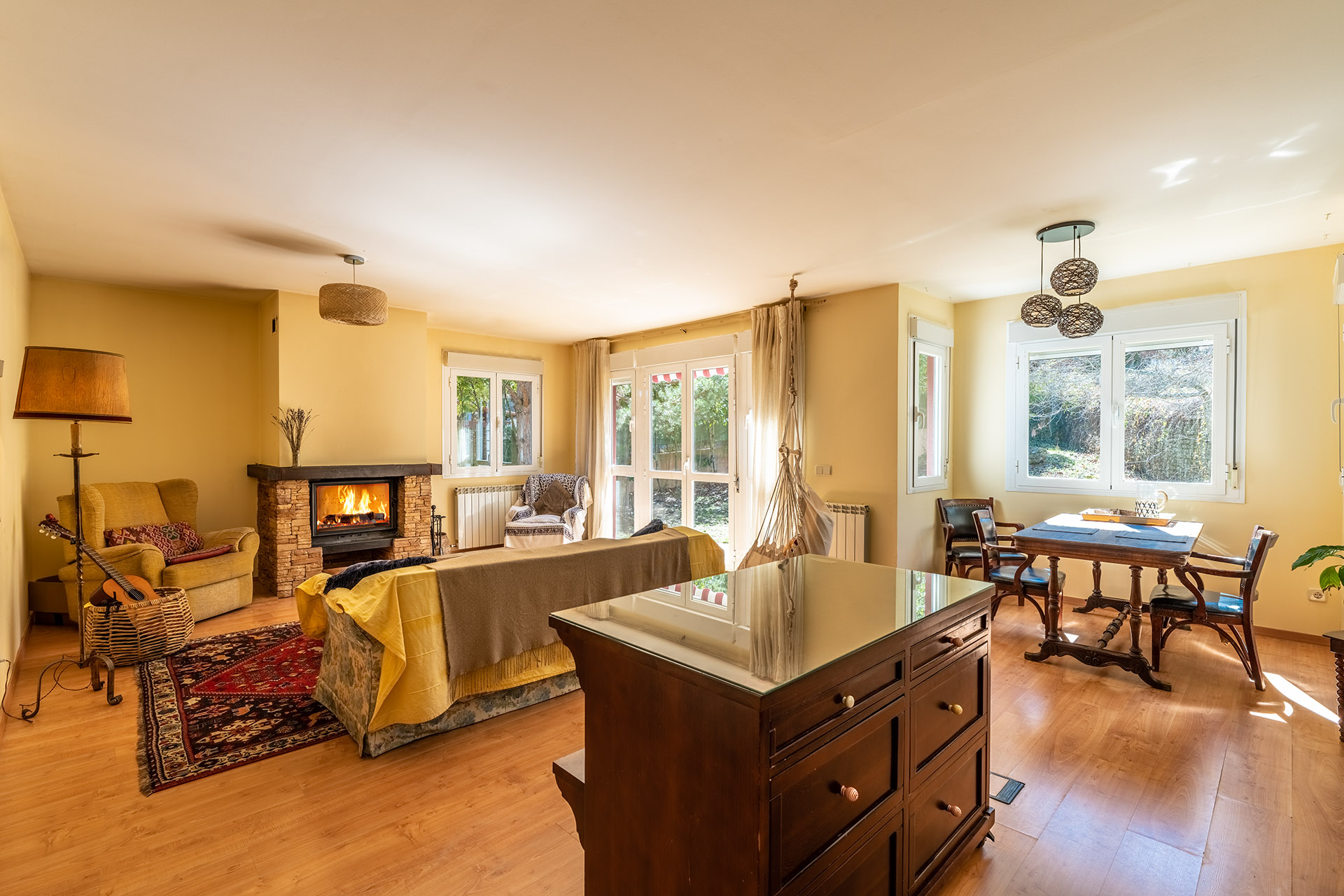 La casa tiene la ventaja de estar construida por el prestigioso arquitecto Juan Carlos Billotti con una estructura de madera con grandes aislamientos, sobre cimentación de hormigón (el sótano de la misma). No es una casa prefabricada. Y sí, ventaja pese a que en España nos educaron con el cuento de los 3 cerditos que nos transmite la idea de que una vivienda de madera es menos sólida que la construida de ladrillo. Sin embargo, la cultura de países más ricos y tremendamente fríos como Finlandia han demostrado que las edificaciones de madera son infinitamente más populares por su calidez y aislamiento ante el frío y/o calor, y su resistencia y duración ante el paso de los años. Los estudios demuestran que la madera puede superar los 100 años de vida, mientras que el hormigón se degrada a los 70 años. La mayoría de los países nórdicos construyen con madera y no es precisamente por problemas de solvencia económica. San Rafael es increíblemente agradable en verano, también es cierto que los inviernos son más duros, de modo, que una casa de este tipo, sí es una GRAN VENTAJA.