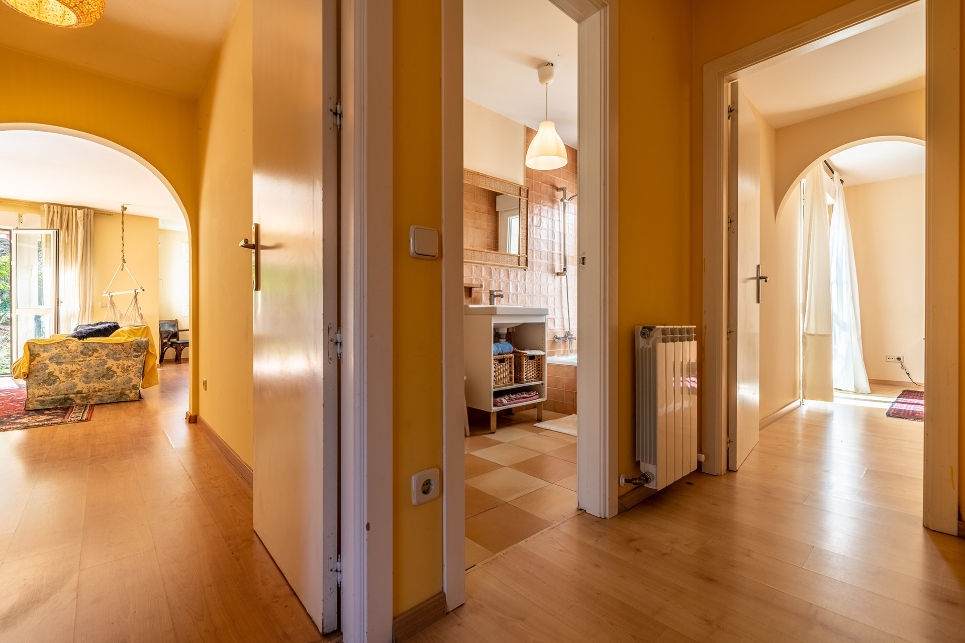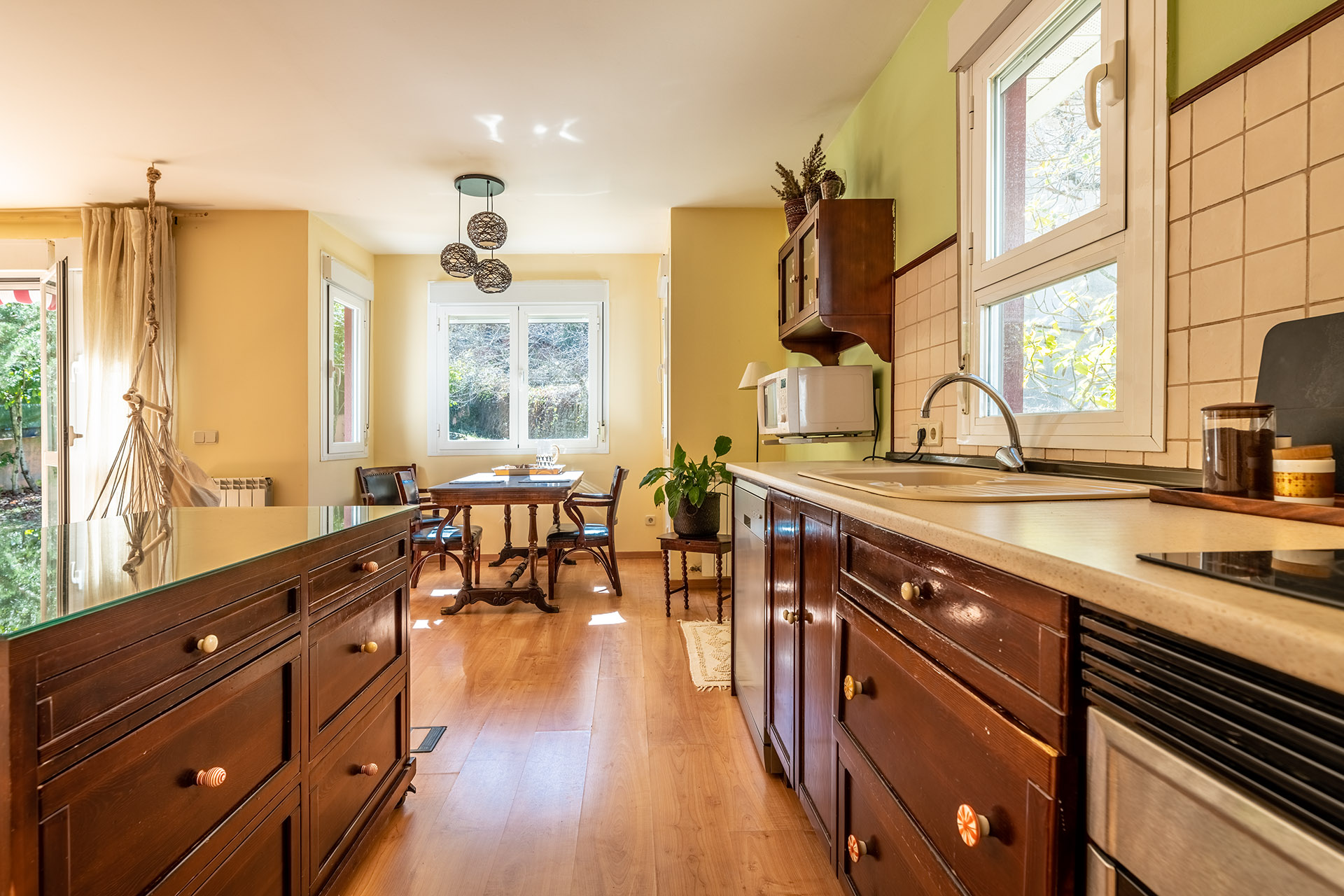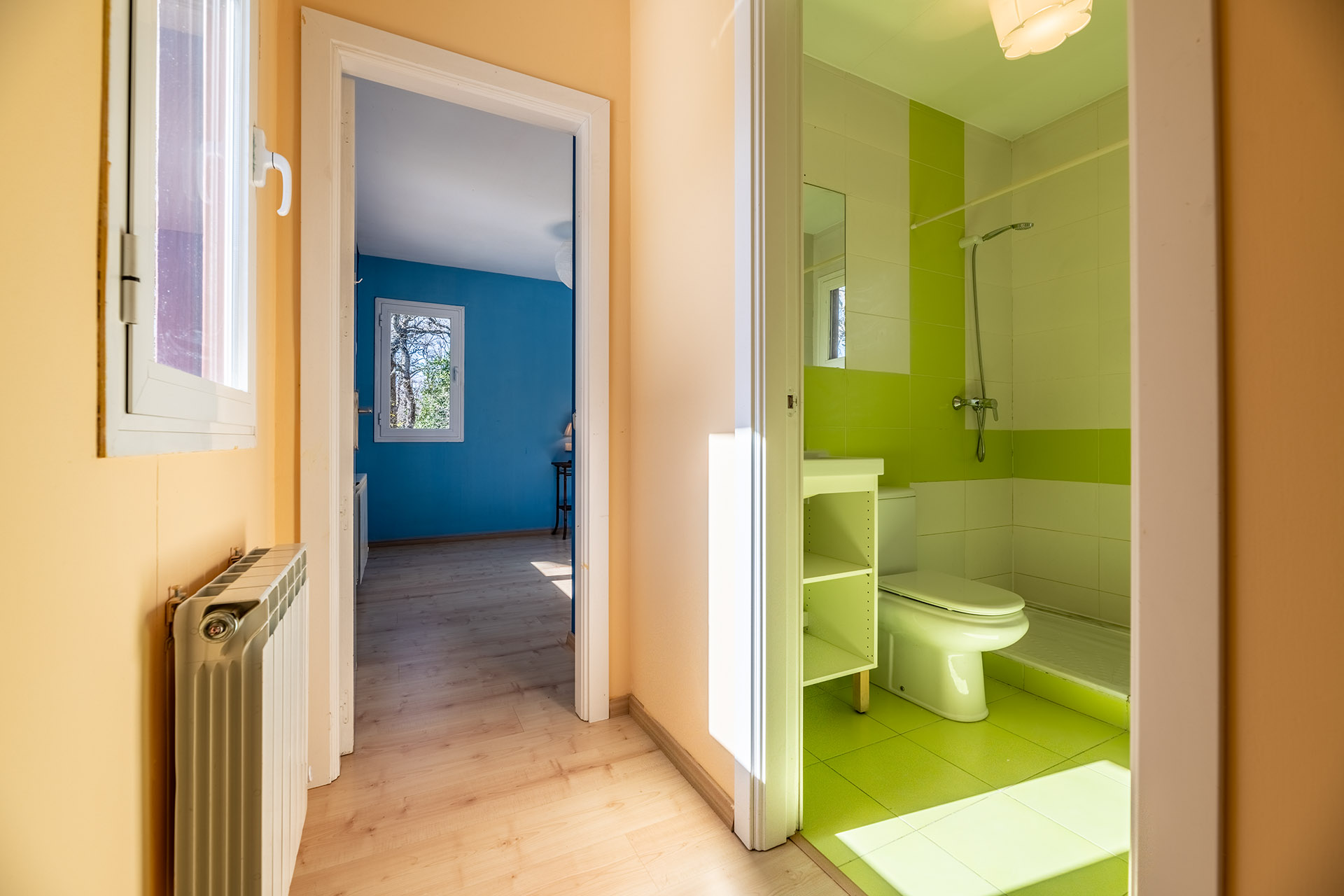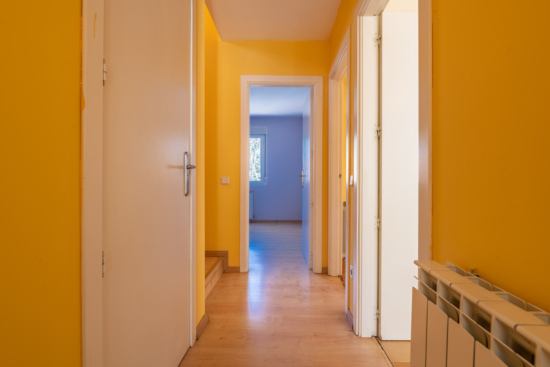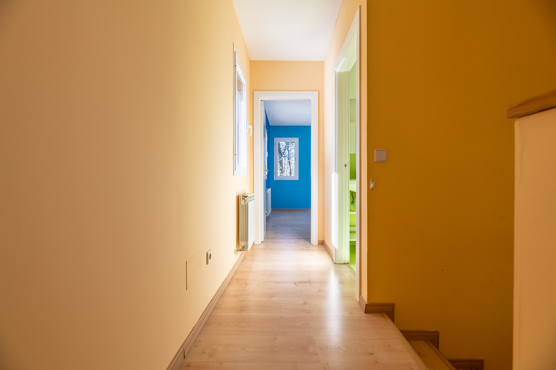 Las paredes interiores son trasdosados de pladur pintados en liso. Cuenta con 174m2 construidos dentro de una generosa parcela de terreno de 481 m2.