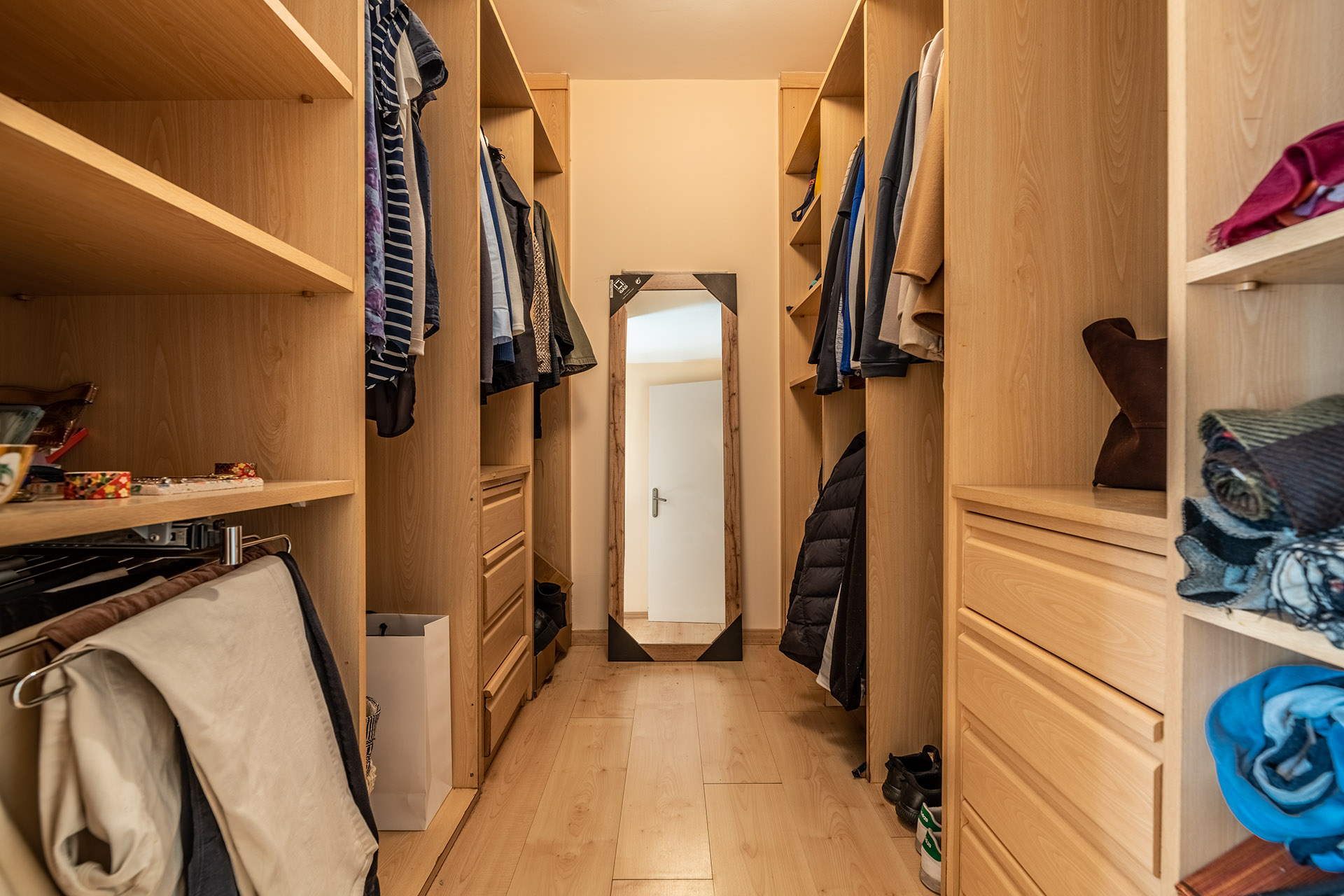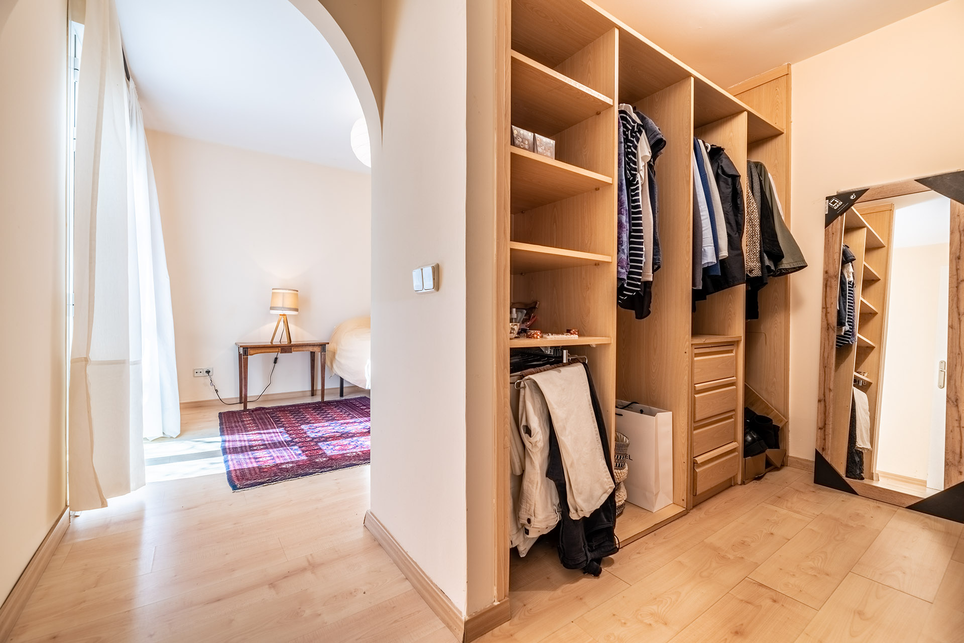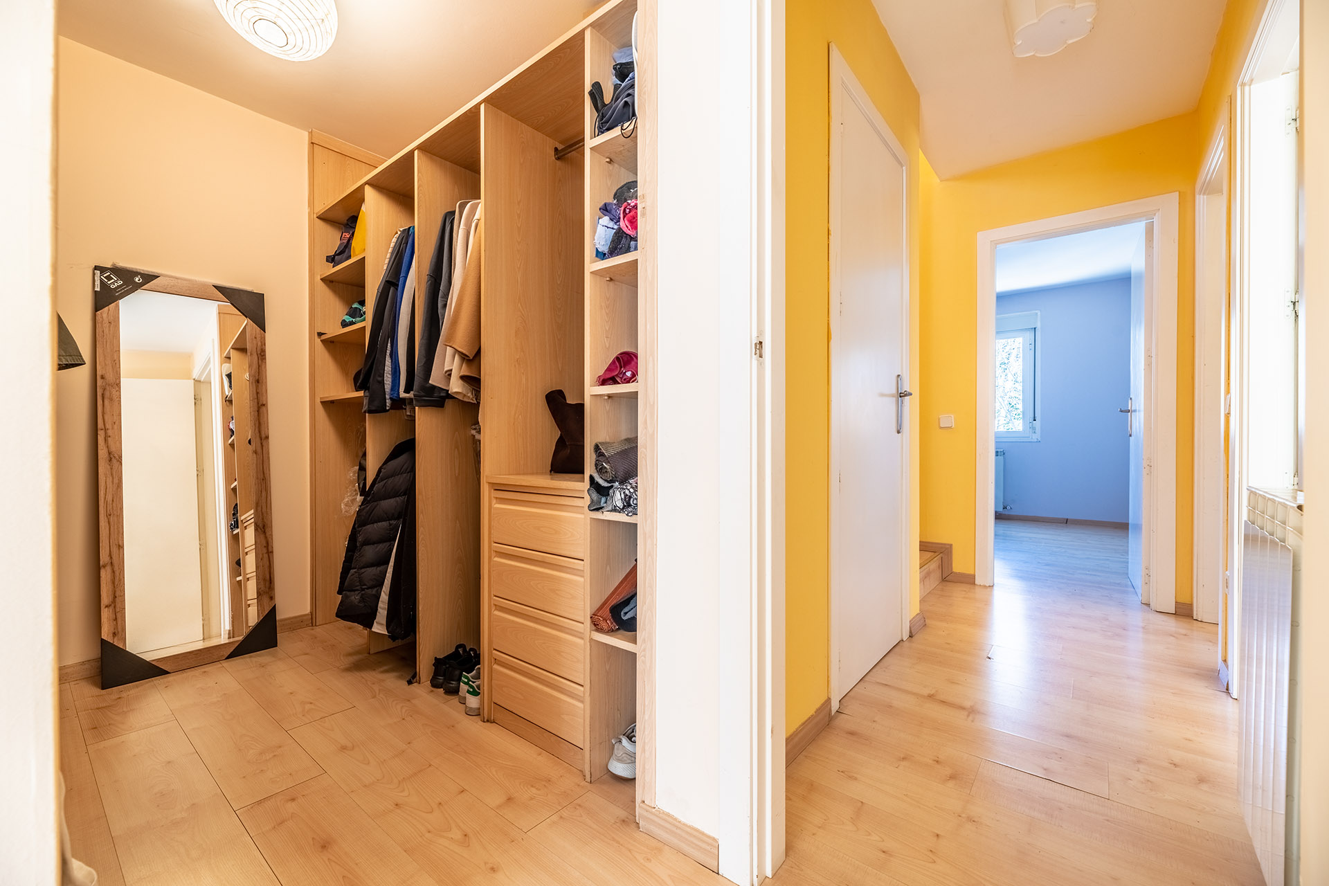 La distribución está muy bien diseñada ya que en la Planta 0 se puede realizar vida completa puesto que tiene 2 dormitorios, uno de ellos con vestidor. Pero si algún día recibimos visita de amigos y/o familiares, la planta superior podrá dar cabida a más personas.