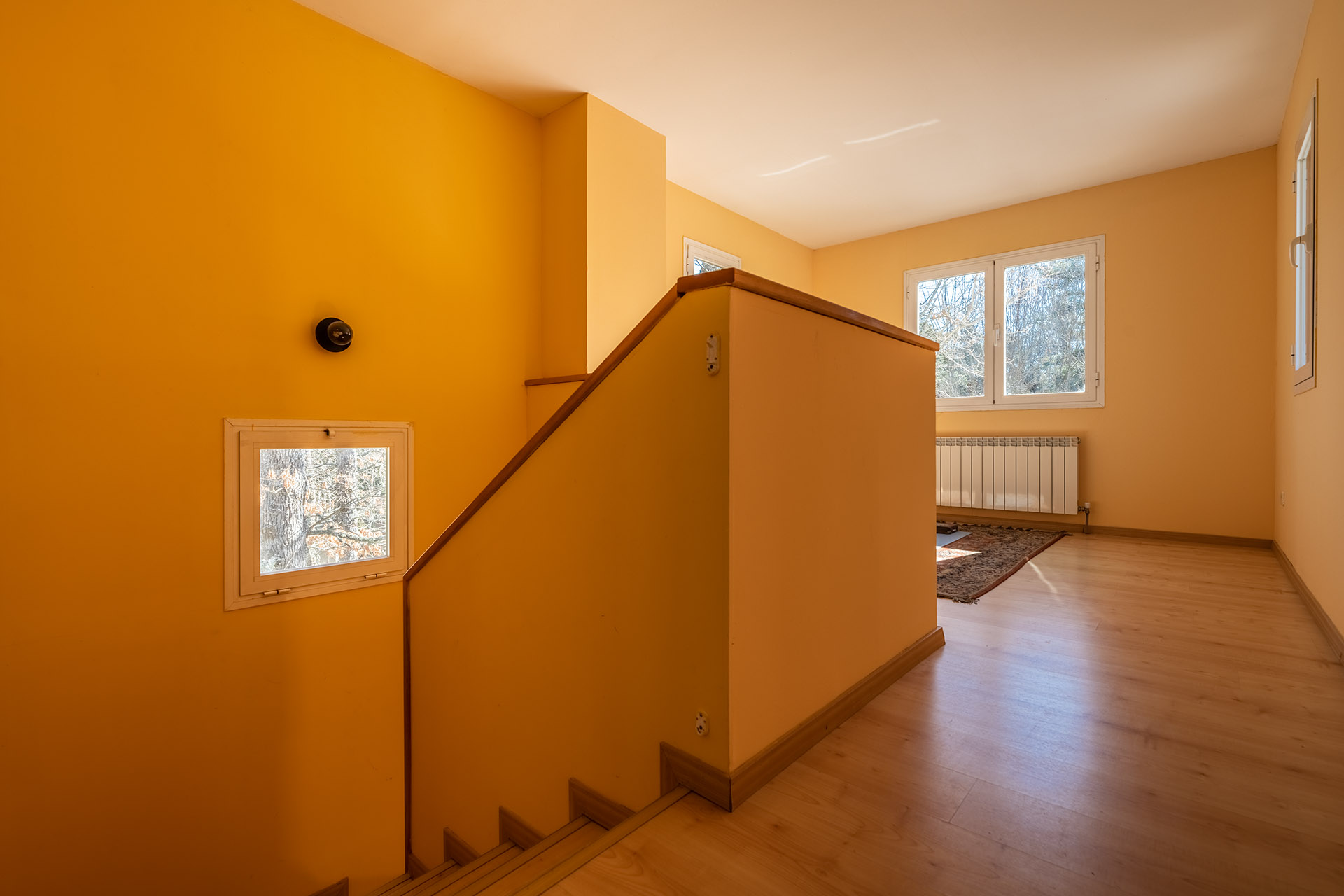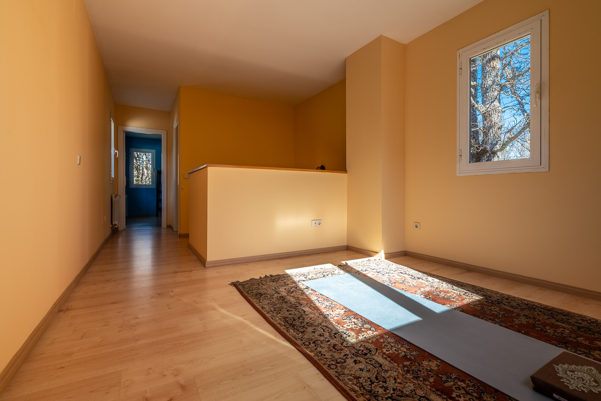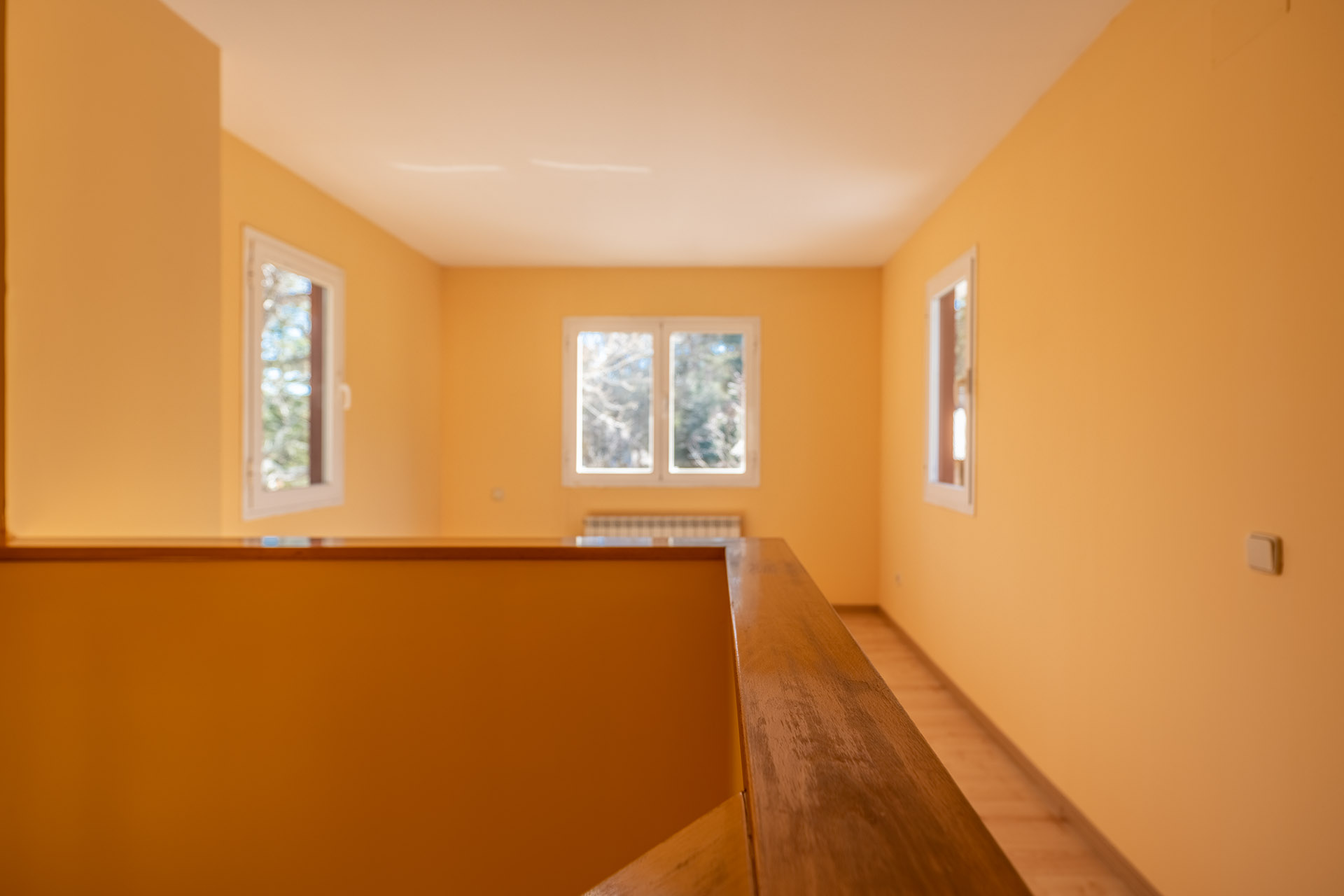 Si subimos la escaleras nos encontramos un espacio diáfano multiuso que podría ser desde una sala de juegos, un despacho con unas bellas vistas a la Reserva Natural, o quizá un cuarto dormitorio. Y es que en esta planta disponemos de un tercer dormitorio y un baño. La luminosidad de la planta