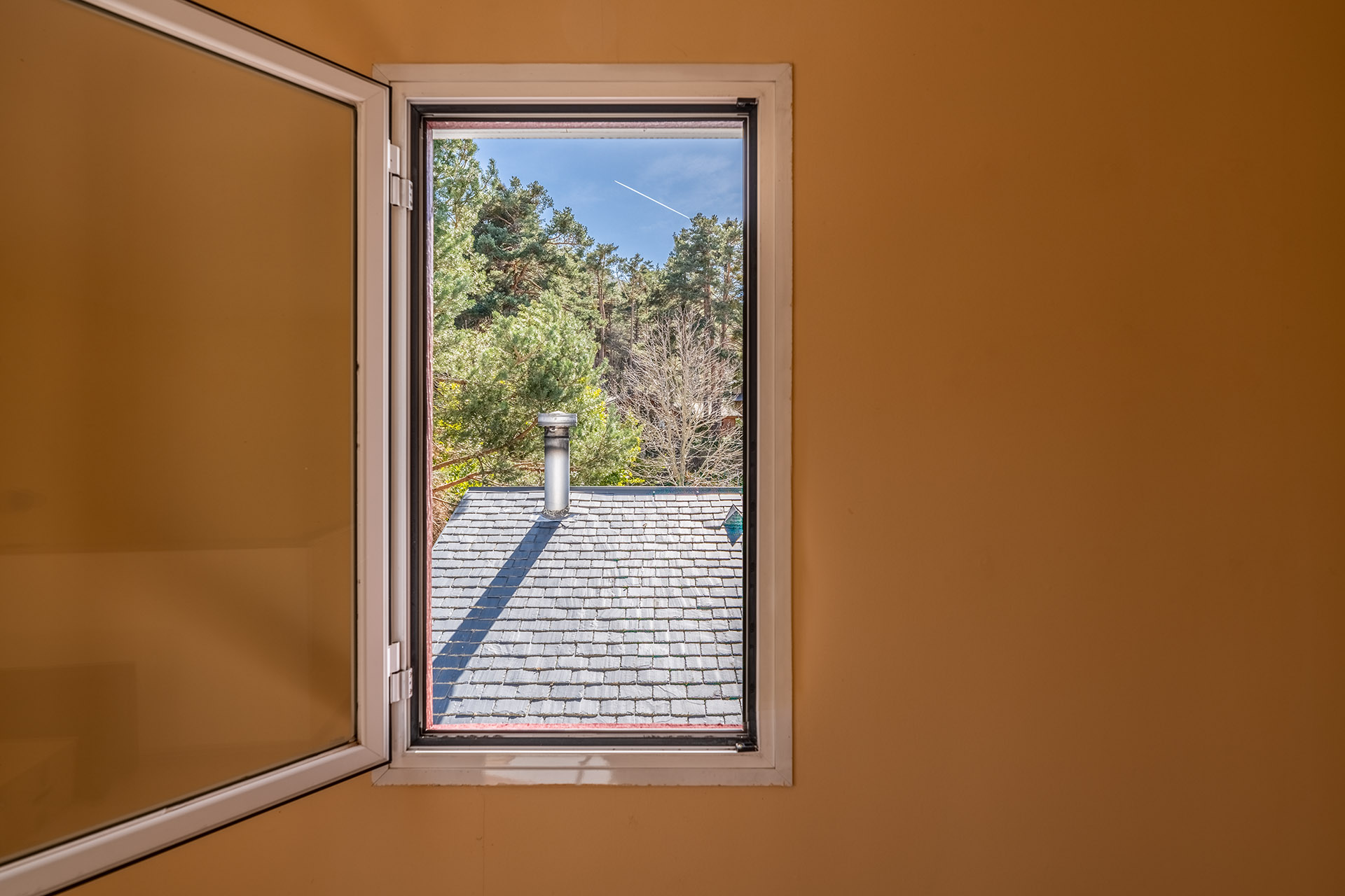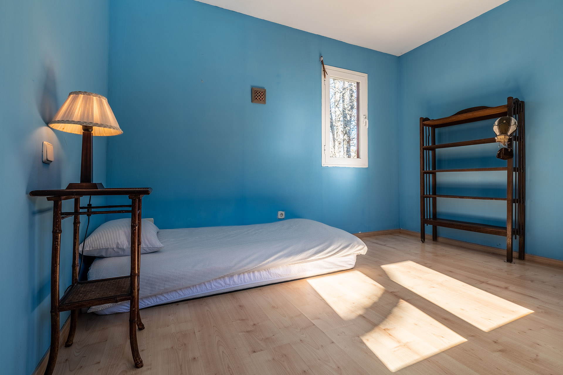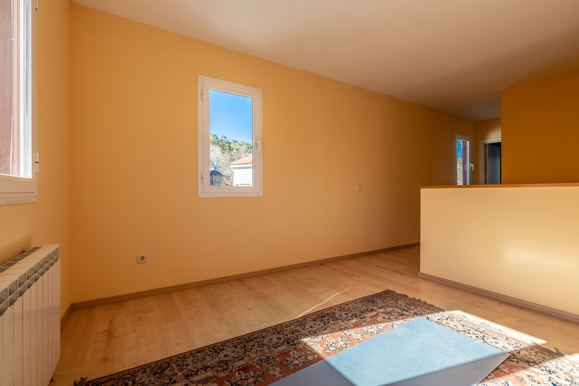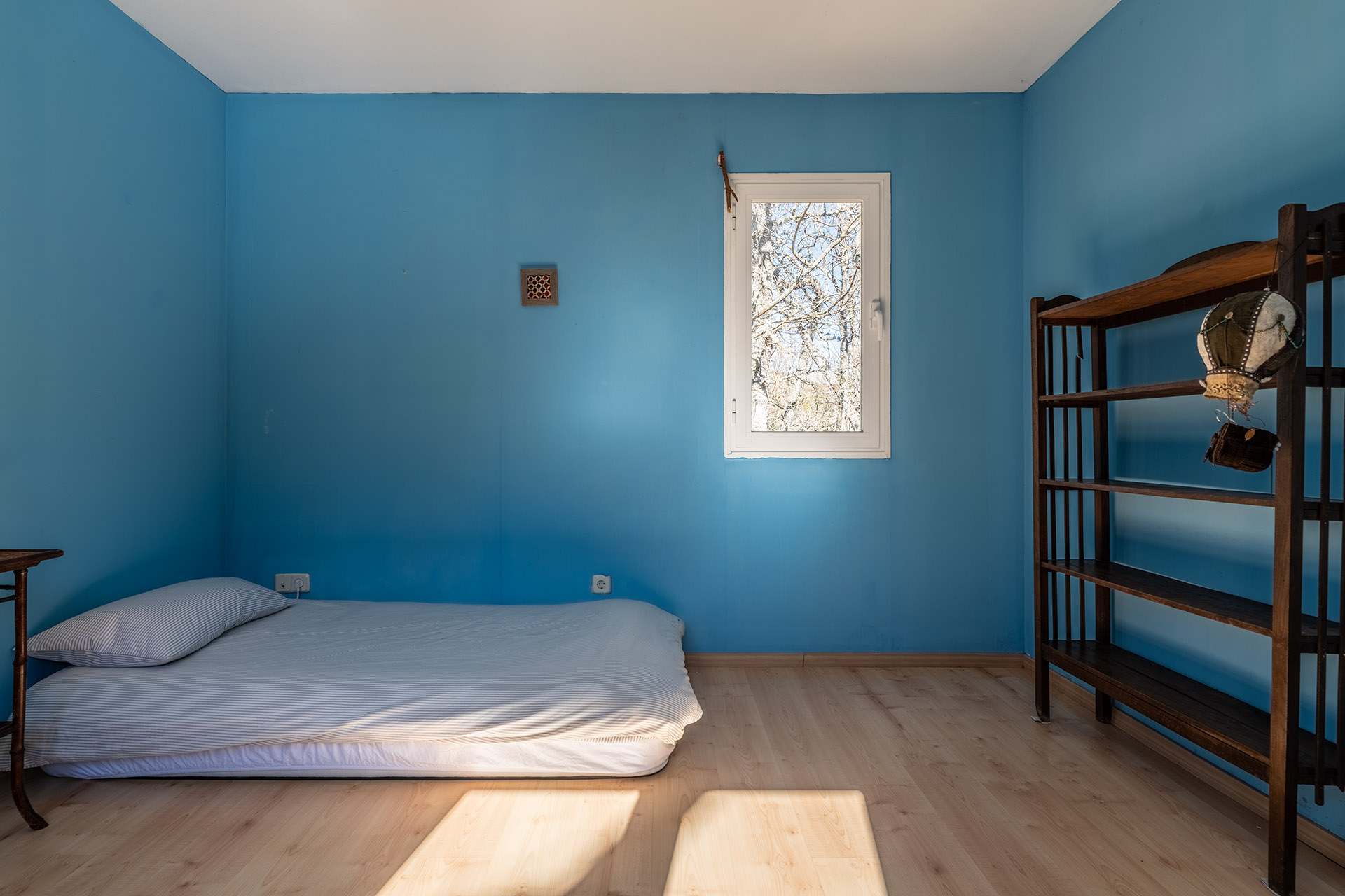 Si subimos la escaleras nos encontramos un espacio diáfano multiuso que podría ser desde una sala de juegos, un despacho con unas bellas vistas a la Reserva Natural, o quizá un cuarto dormitorio. Y es que en esta planta disponemos de un tercer dormitorio y un baño. La luminosidad de la planta