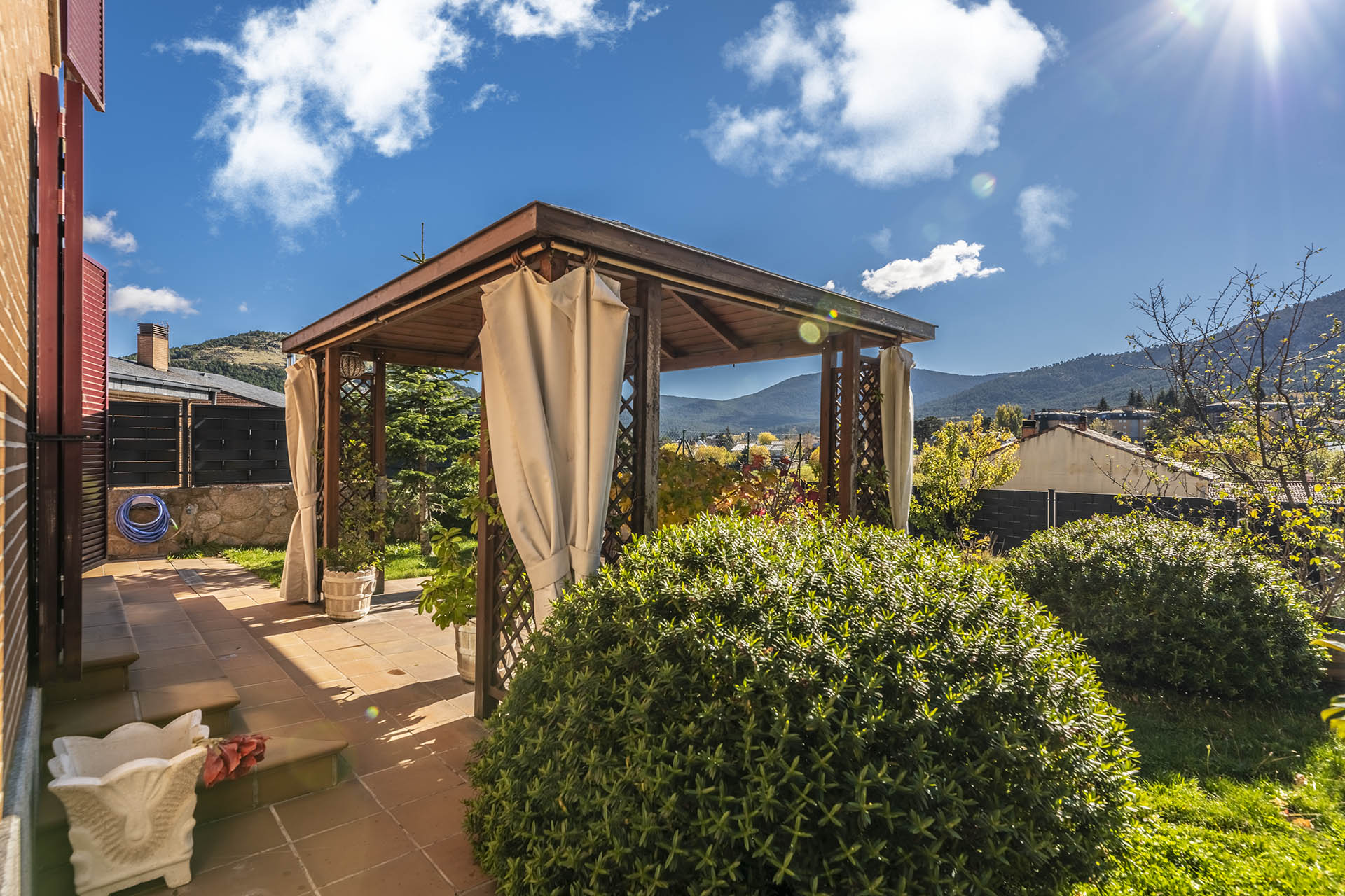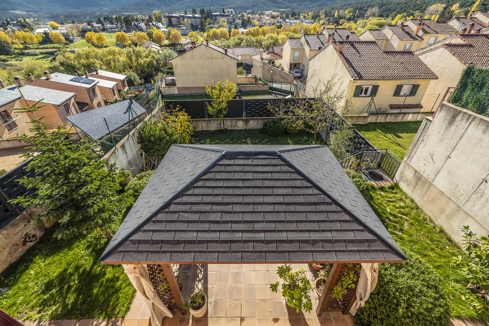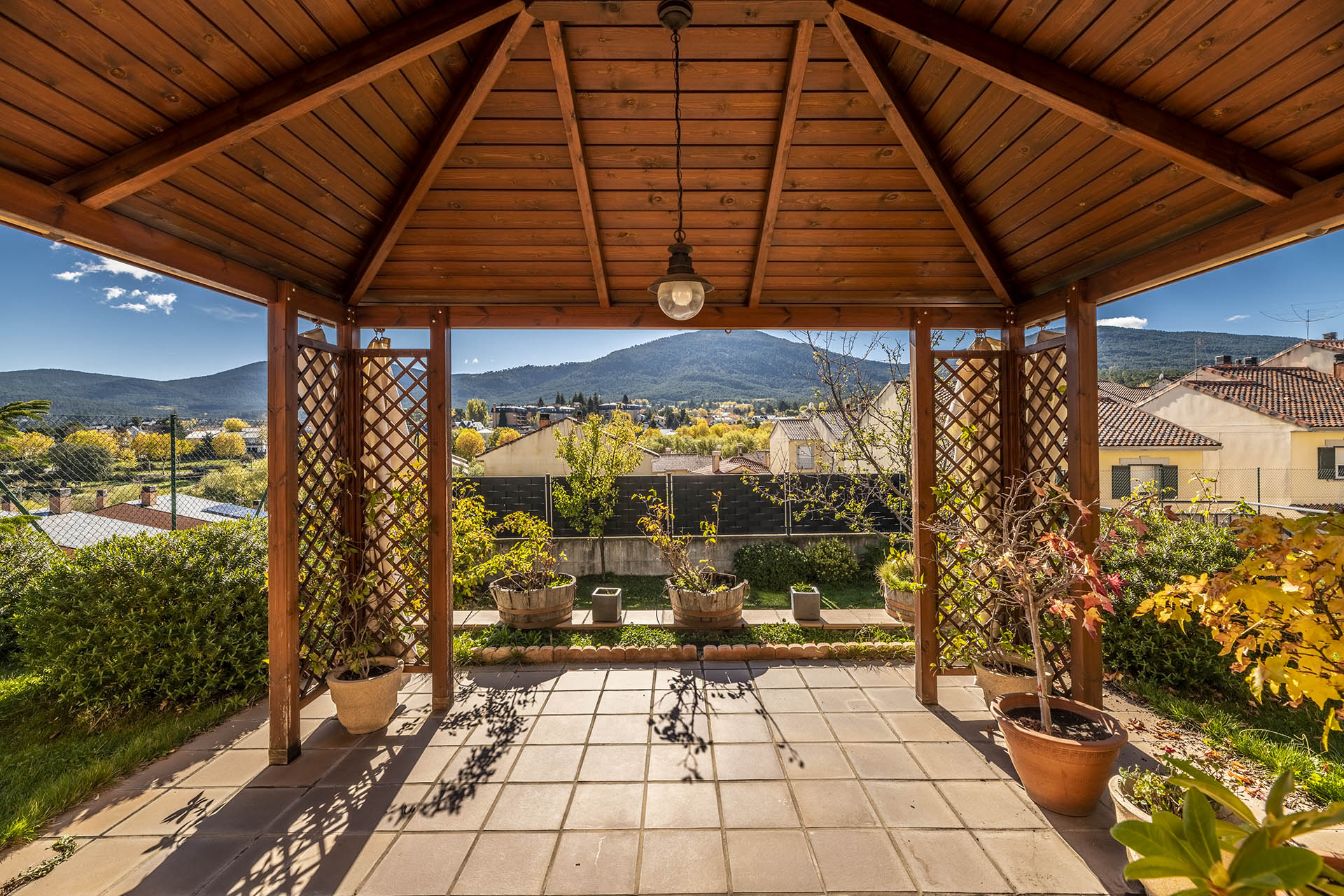 – Cenador de 12 m2 de madera a 4 aguas.