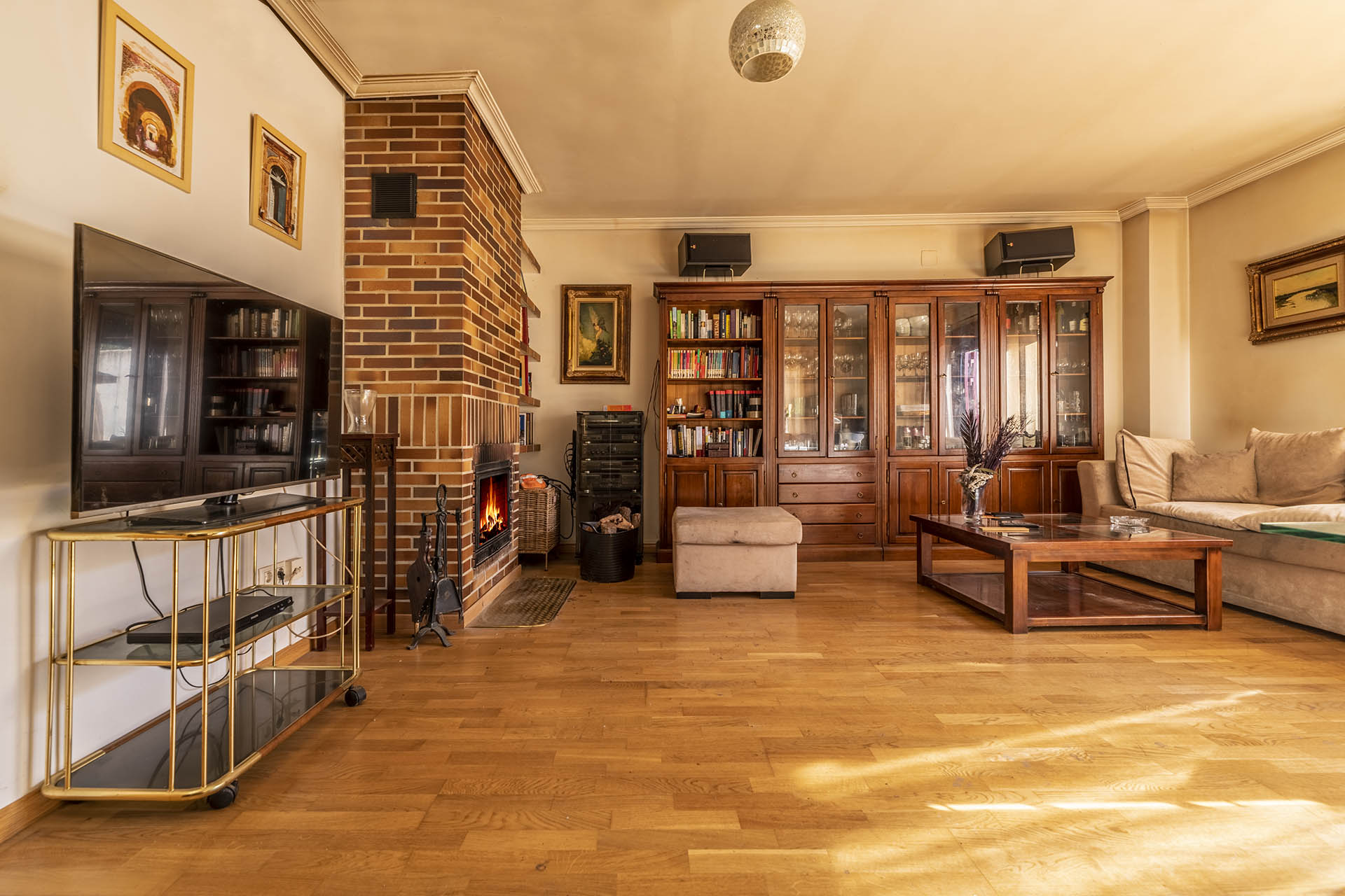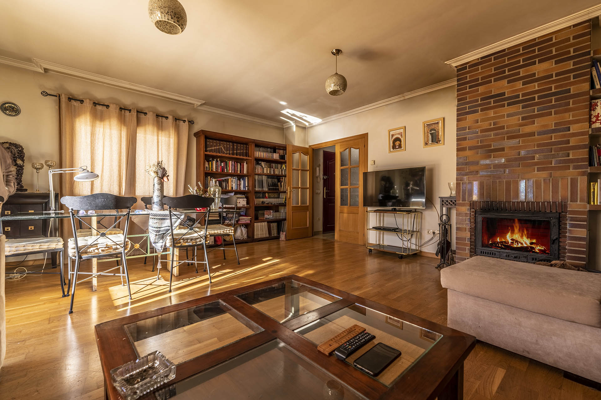 – Una habitación con librerías de escayola de diseño.