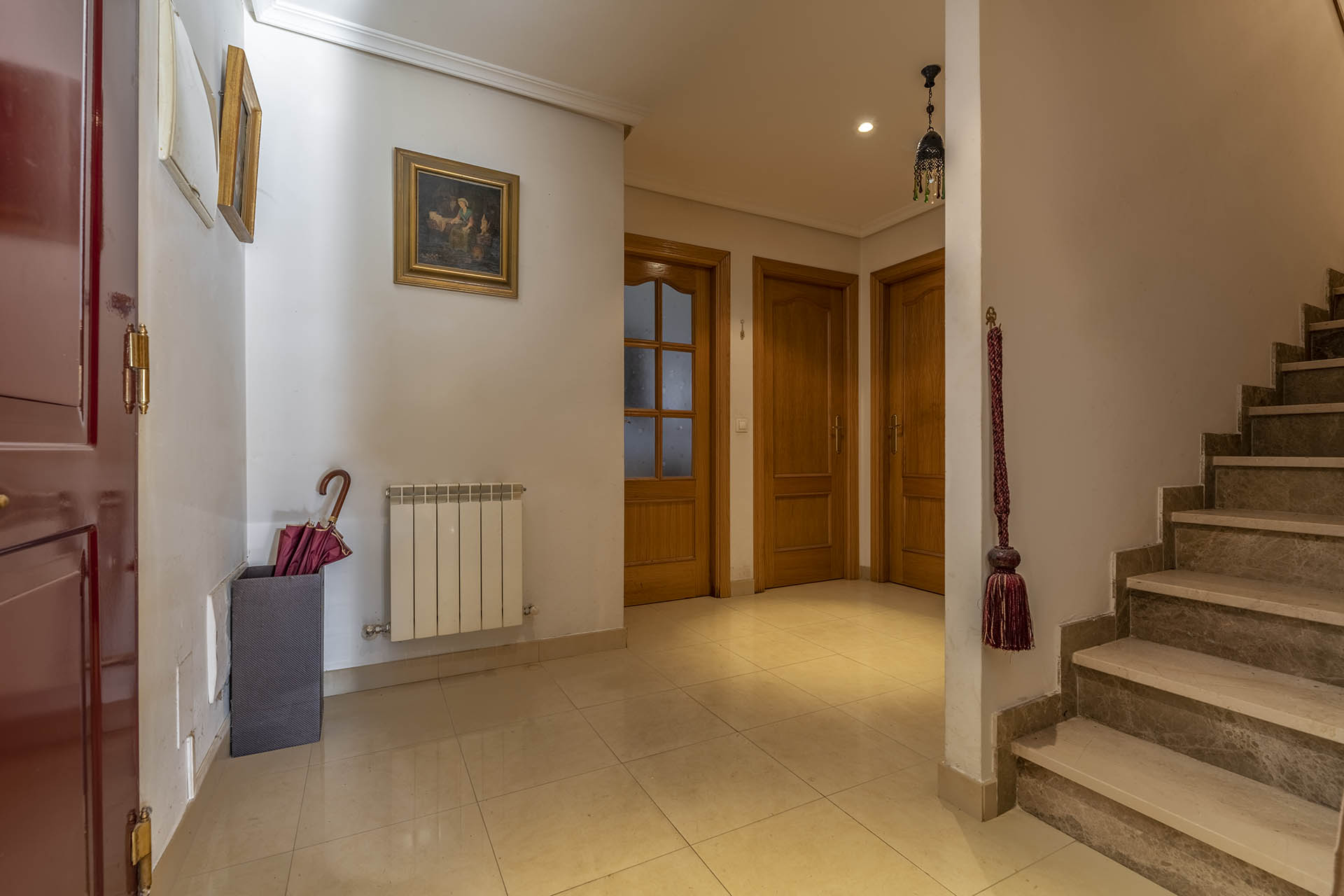 Los pavimentos de la vivienda van desde tarima flotante en dormitorios, pasillo de planta alta y en el salón, a solados de gres de primera calidad en baños, cocina y vestíbulos, así como escalera de mármol. El garaje y zonas de acerado en patio exterior se encuentran solados con gres de exteriores de primera calidad.
