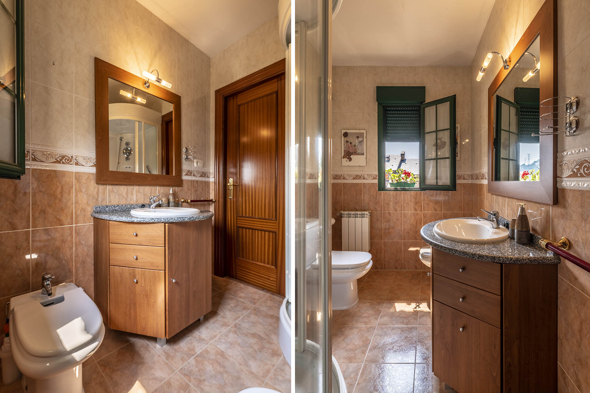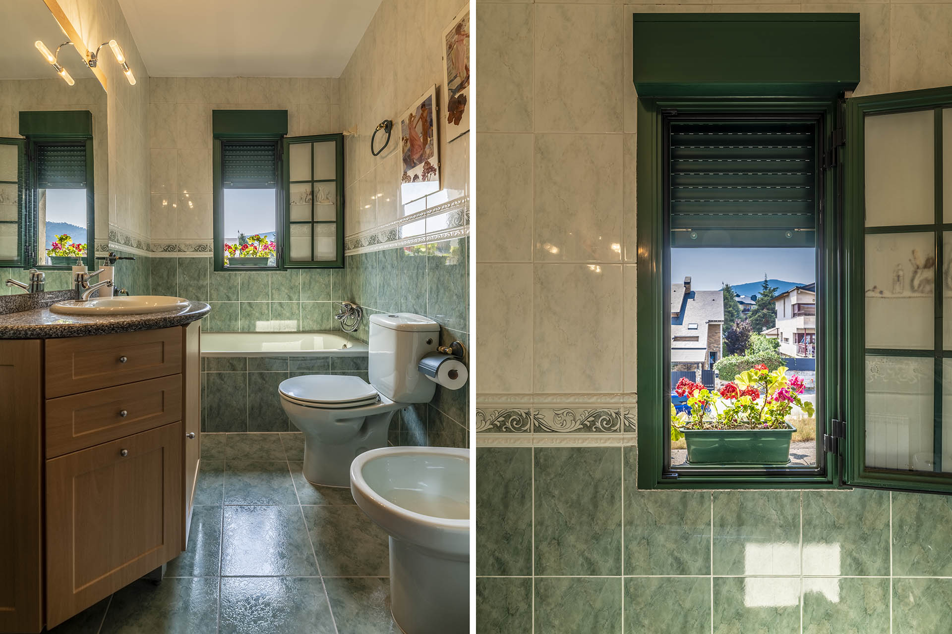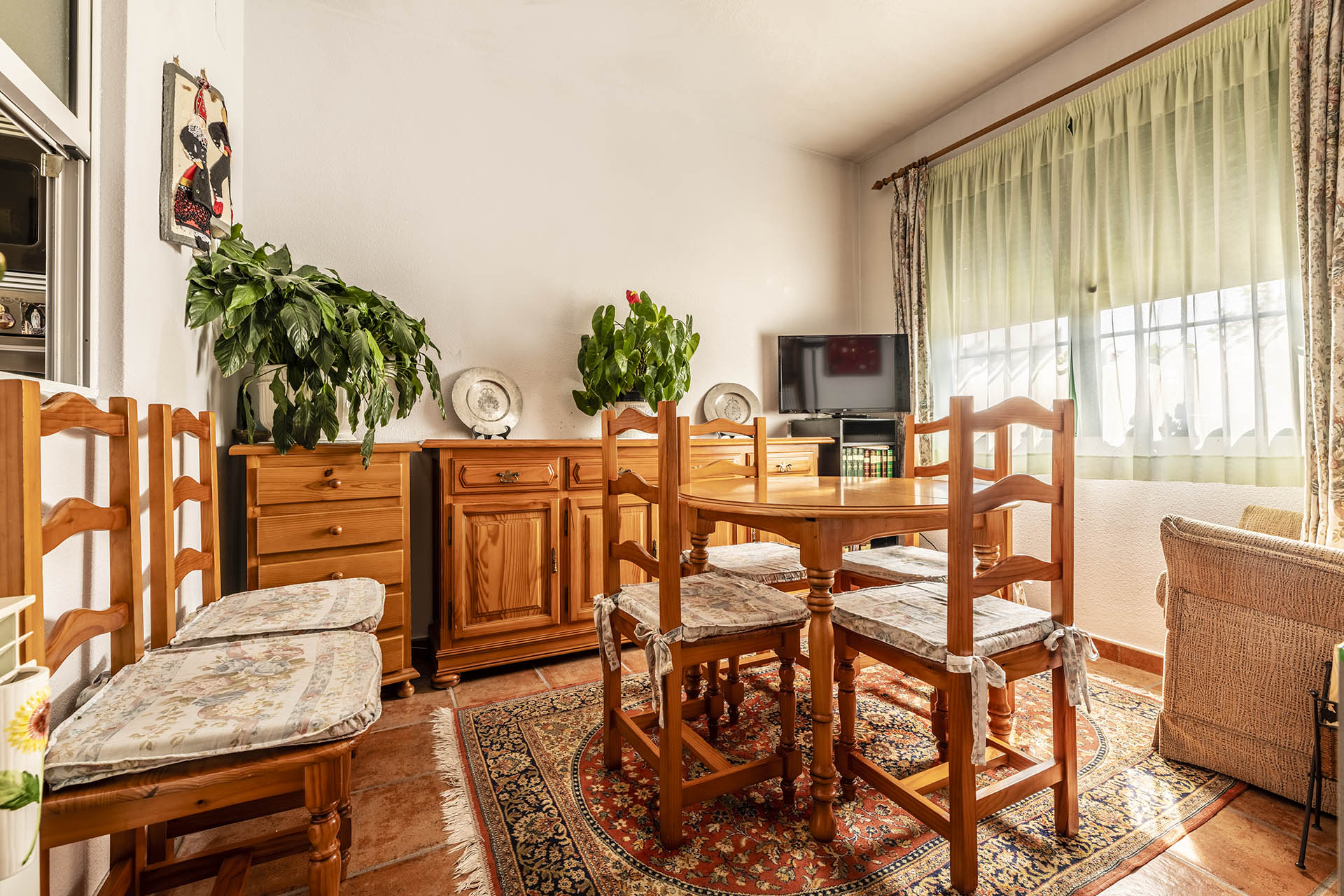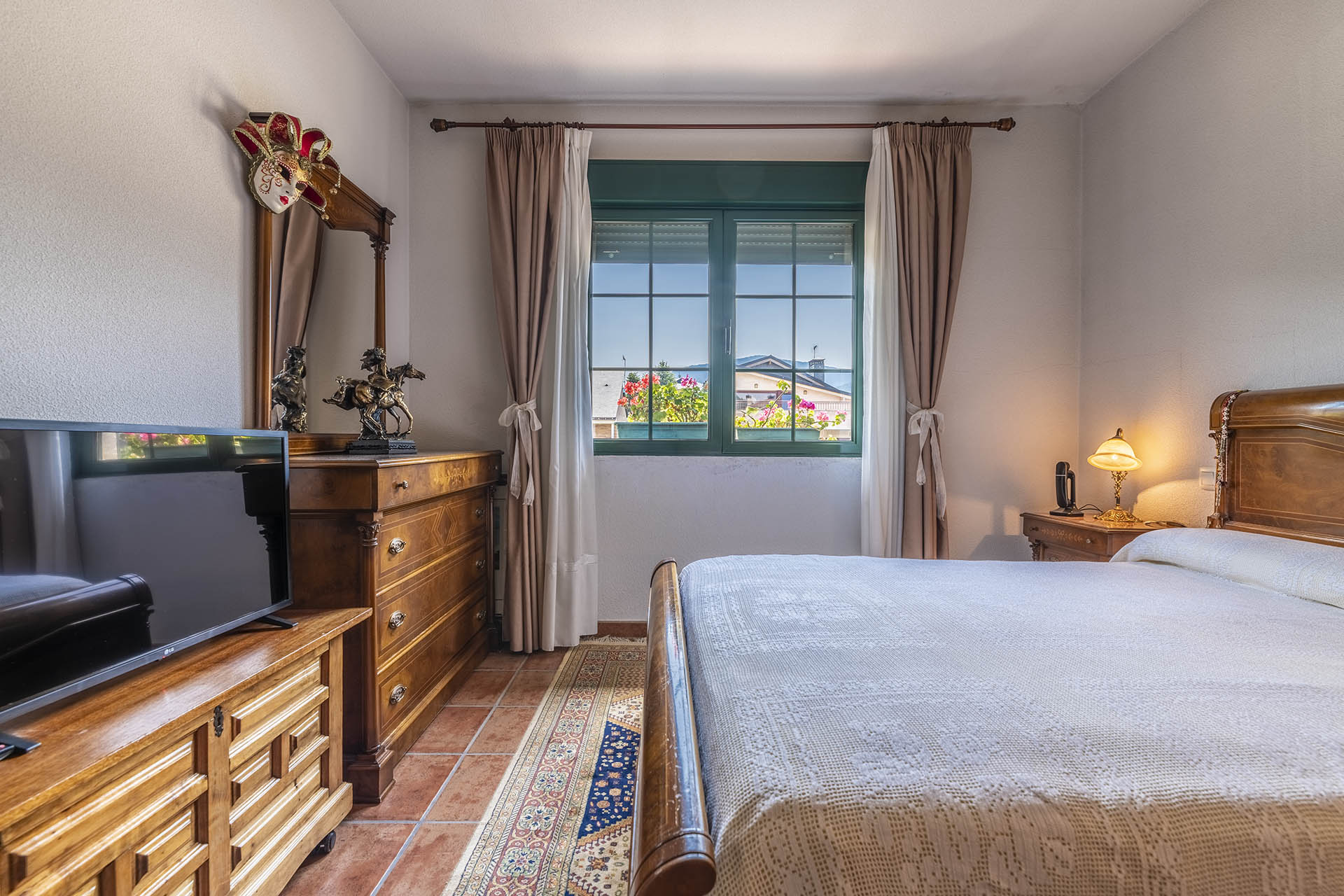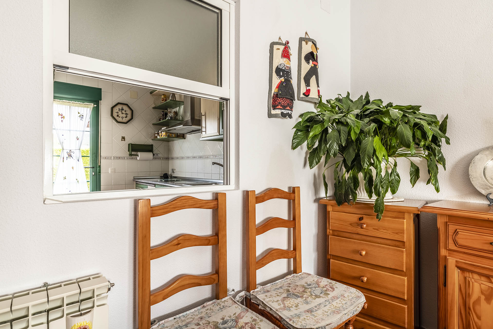 Si accedemos por la entrada frontal y principal de la vivienda, nos encontramos un bonito paseo de rosales y plantas consolidadas que da acceso a su espectacular terraza acristalada y practicable al 70% con vistas a la montaña, la cual nos adentra en la vivienda. Desde ésta, podrás disfrutar de bonitos días de verano y de invierno. Una vez dentro en el recibidor, a la izquierda accedemos a un gran salón con numerosas ventanas y preciosas vistas a la montaña. Al otro lado del recibidor tenemos acceso a una acogedora sala de estar que está comunicada mediante una ventana de servicio con la cocina. En esta planta tenemos un pequeño aseo de cortesía debajo del hueco de la escalera pero con altura suficiente para ponerse de pie.