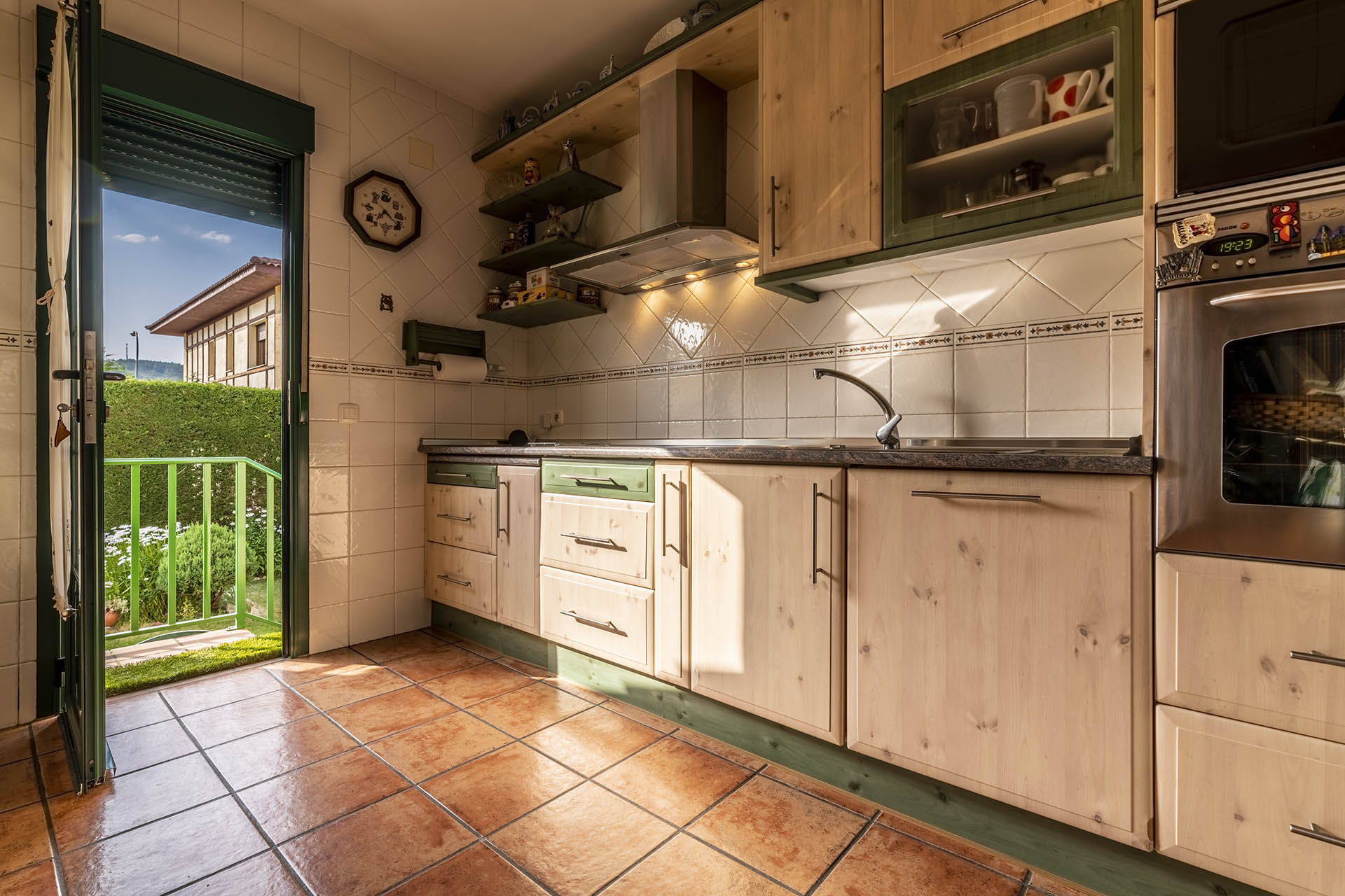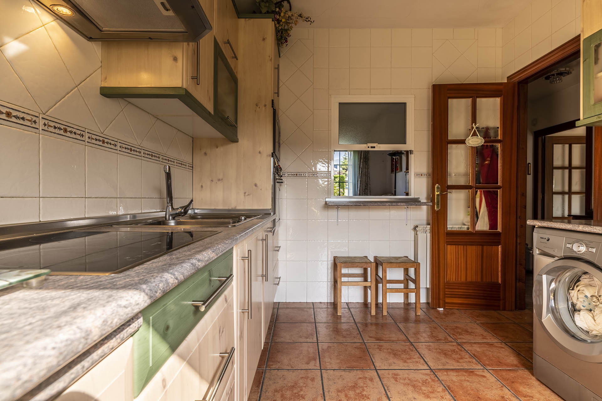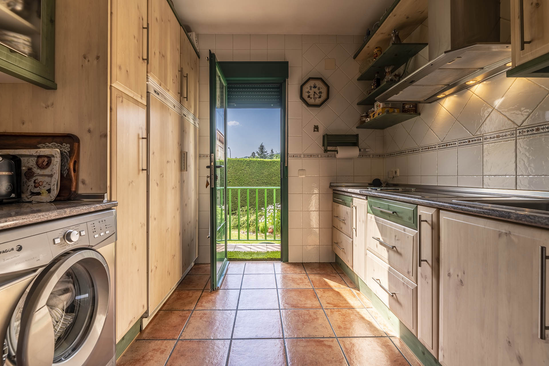 La cocina de la vivienda es muy amplia y se entrega totalmente equipada. Tiene una luz apasionante en donde cocinar será todo un placer. Al final de ésta, nos encontramos una puerta que nos permite salir al jardín situado en el lado posterior de la casa donde disfrutar del maravilloso clima veraniego de San Rafael.