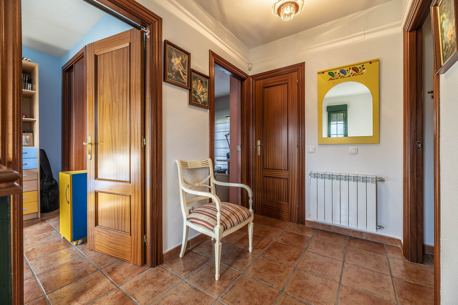 Subiendo la escaleras que nos encontramos al final del recibidor accedemos a la segunda planta en la cual se encuentran los 4 amplios y holgados dormitorios de la vivienda, el principal con baño en suite, y por otro lado un segundo baño para dar servicio a las restantes habitaciones. Las cuatro gozan de vistas magnificas con sus grandes ventanas e incluso, balcón en una de éstas.