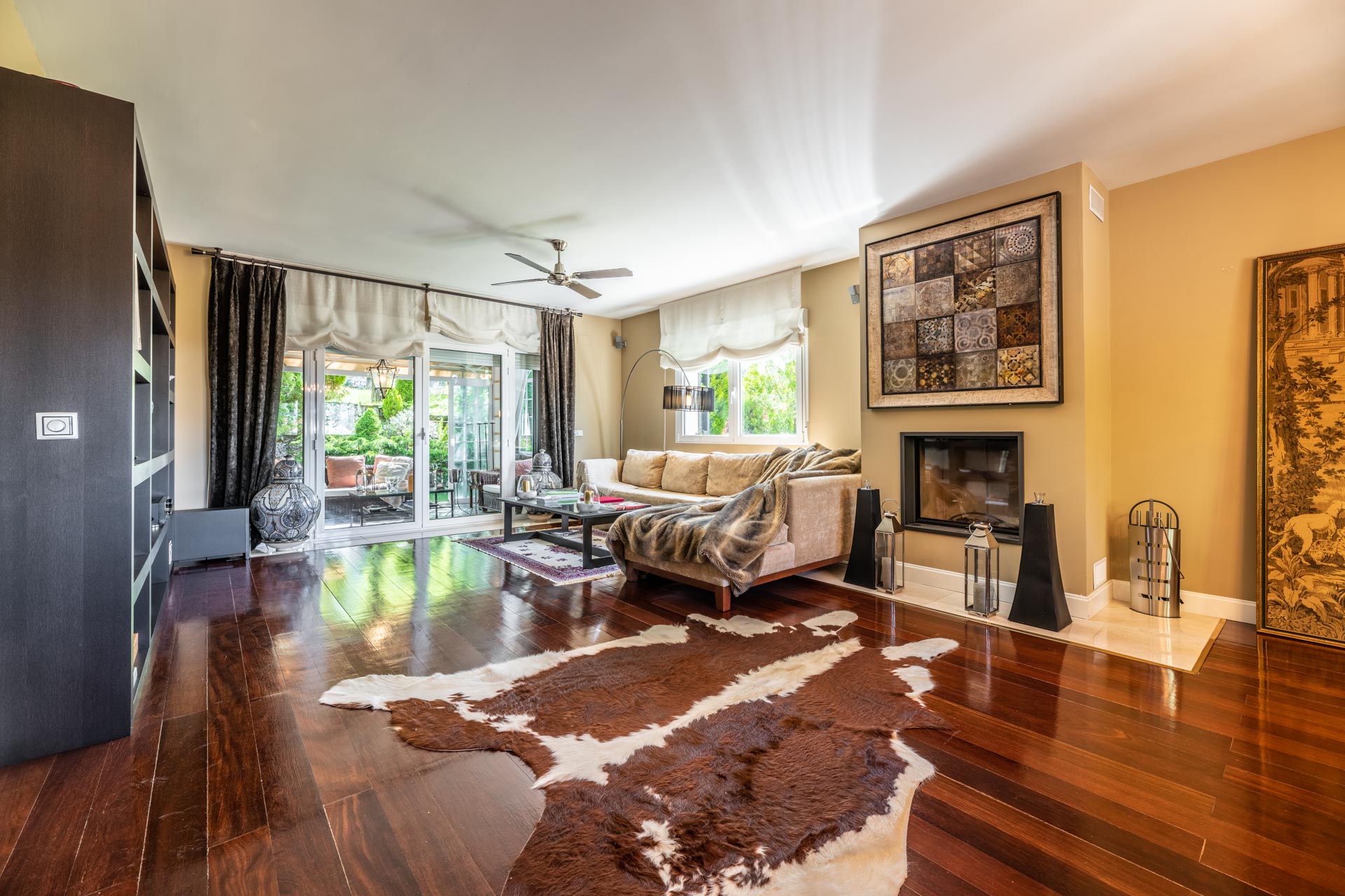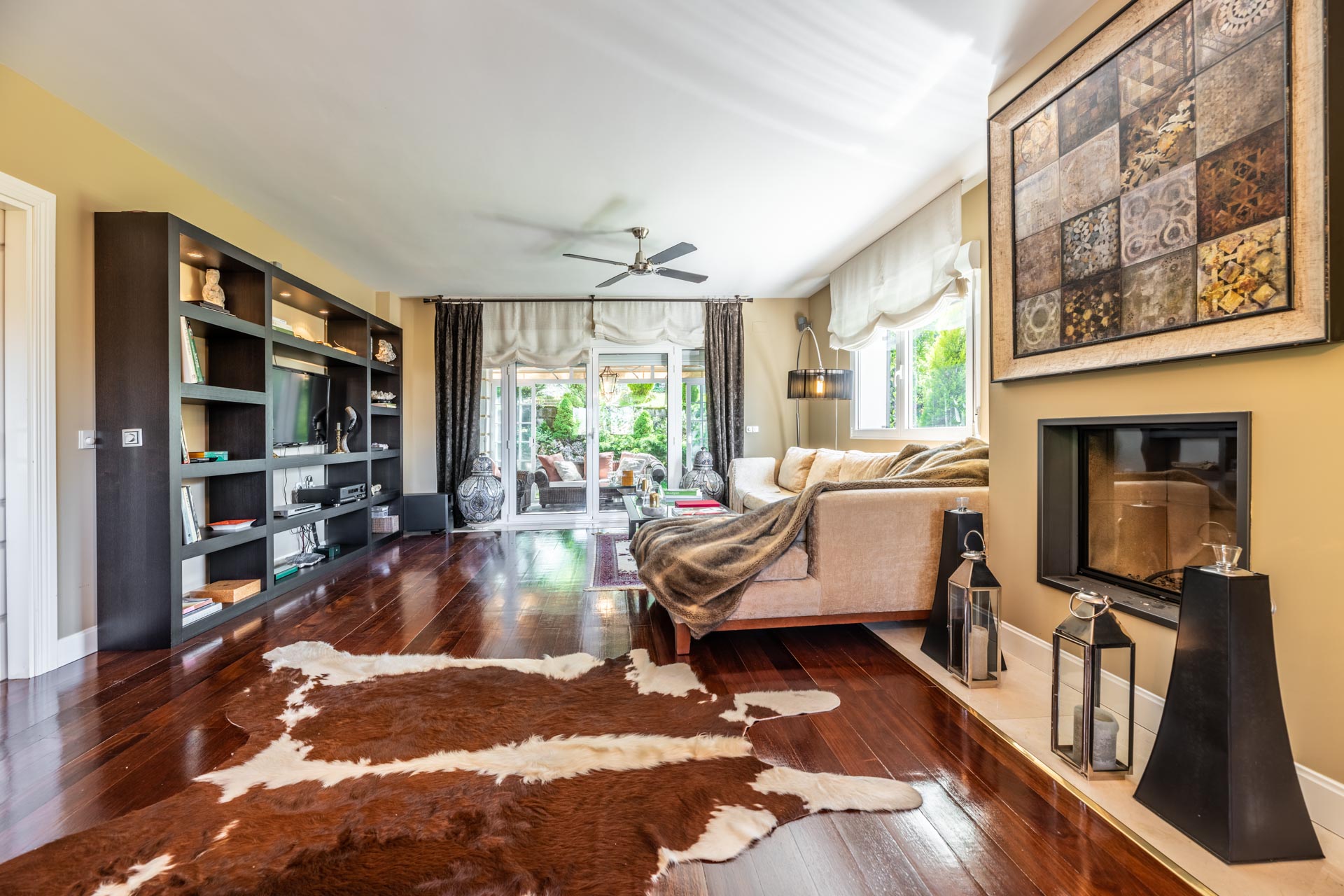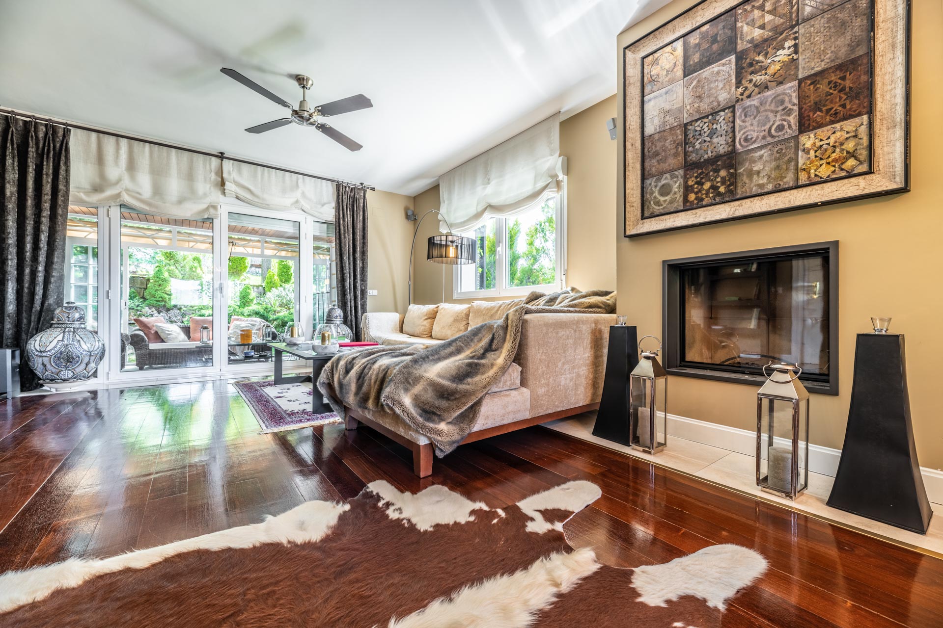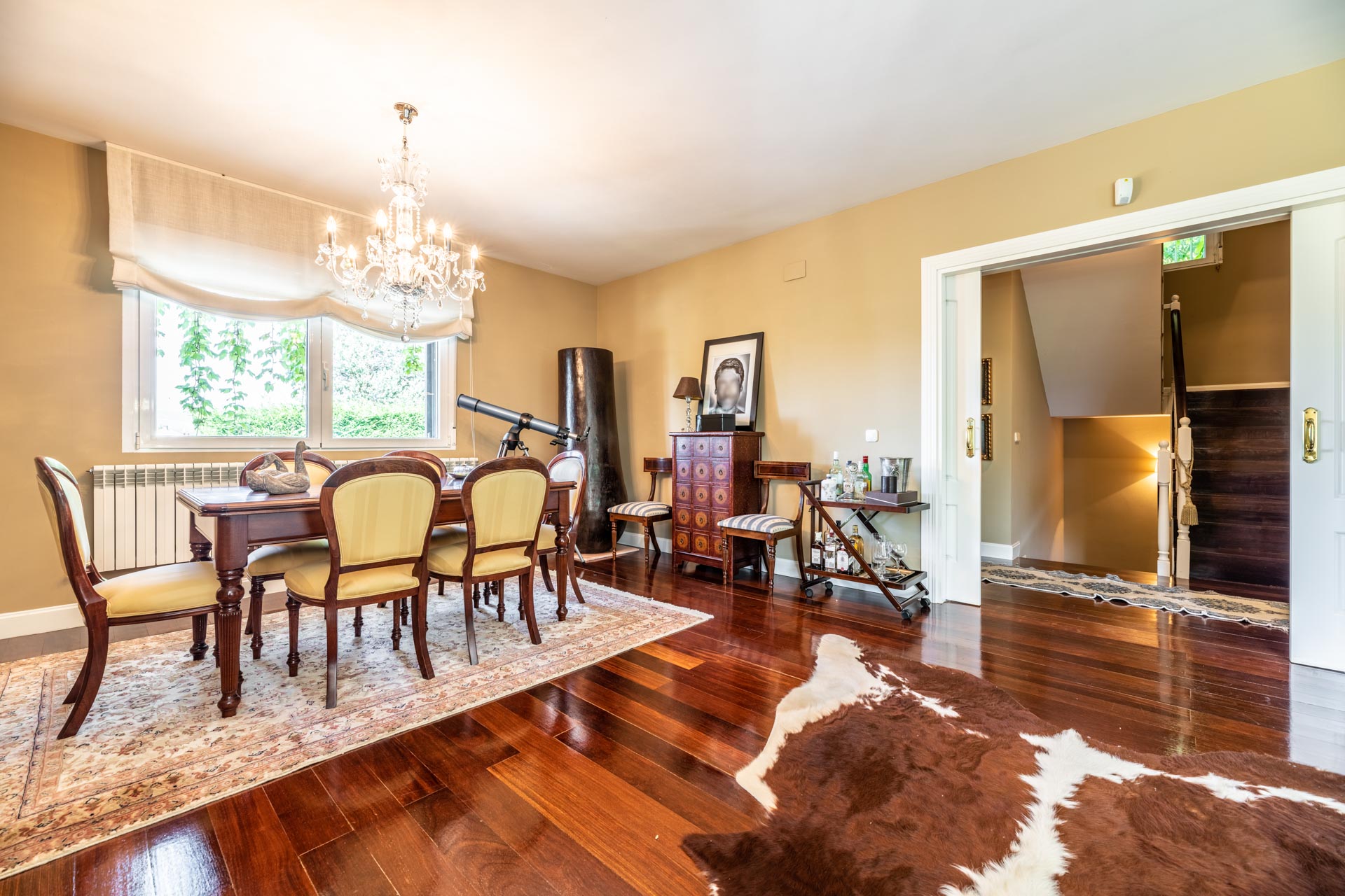 Construido sobre una piedra madre de granito. El suelo de toda la vivienda (excepto baños y cocinas) es de madera tropical de Sucupira, montado sobre rastreles. Una madera de gran resistencia al paso del tiempo y que otorga gran elegancia y distinción desde que accedemos a la casa. El resto de pavimentos son porcelánicos de primera calidad. También podemos encontrar verdadero Mármol italiano en el perímetro de 2 de sus 3 chimeneas. Chimeneas, que por cierto, poseen un tiro increíblemente eficiente que impiden que se traspasen olores al interior de la vivienda.