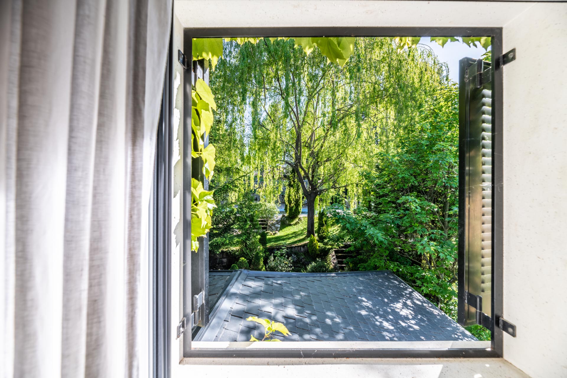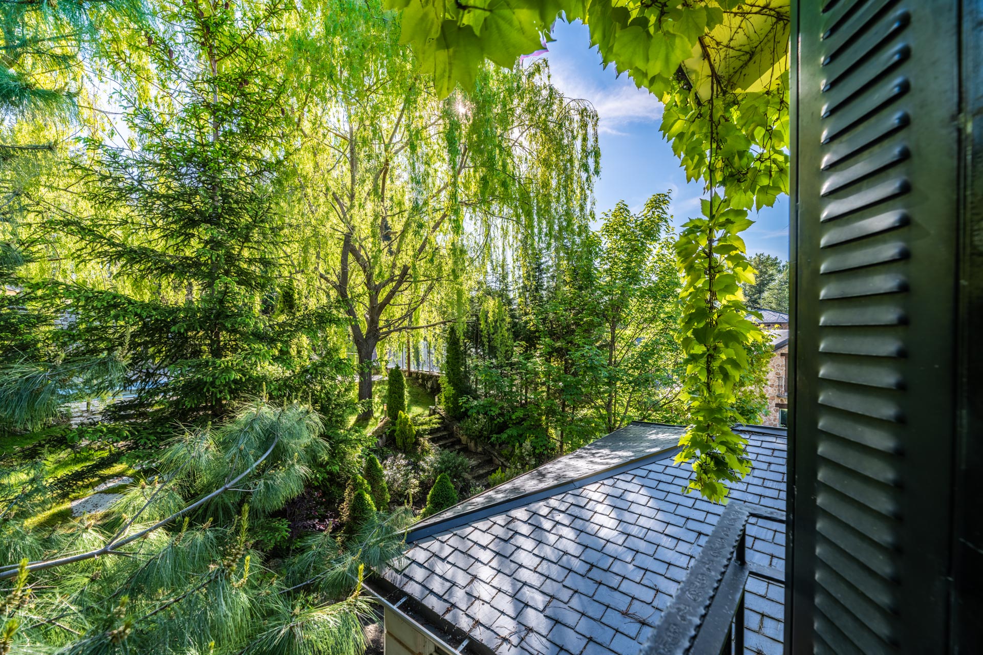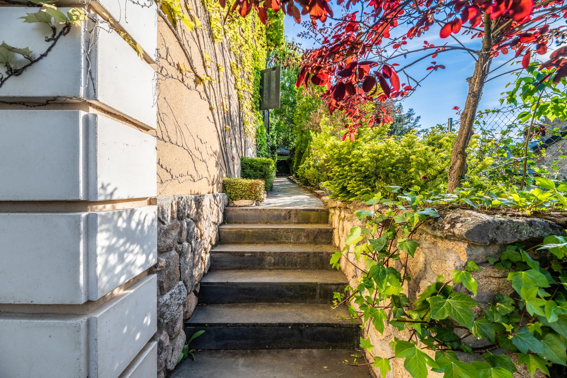 A solo 40 min de Madrid y rodeado de un jardín compuesto de elementos naturales de la propia montaña y otros elementos paisajistas que se diseñaron a medida. El parthenocissus que envuelve la vivienda la convierte en una casa única y camaleónica por los distintos colores que cubrirán la vivienda en cada estación del año, desde el verde en primavera, a los rojos intensos del otoño.