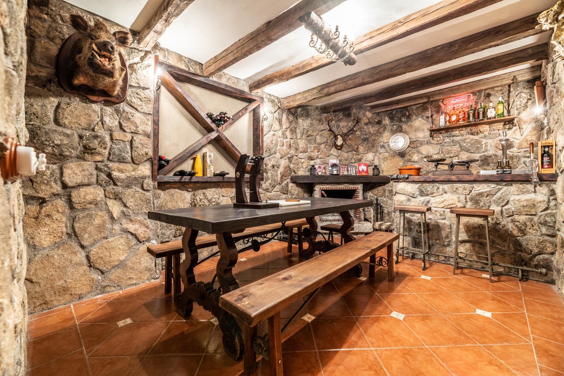 En la planta menos -1 tenemos una gran bodega con chimenea para disfrutar de celebraciones con amigos, cuando el tiempo no nos permita disfrutar de la barbacoa del jardín. A su vez en esta planta, tenemos el quinto dormitorio y un aseo de cortesía. Desde aquí podemos acceder a la zona del garaje a través de otra de sus puertas blindadas.