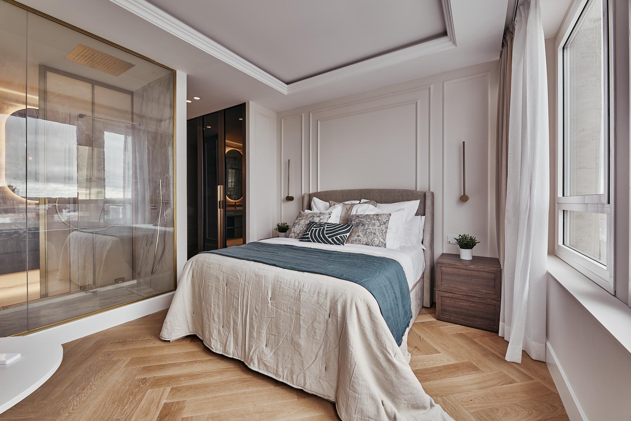 Situada en María de Molina 1, en pleno barrio de El Viso, una de las zonas residenciales más demandadas y consolidadas de la capital, Verum ocupa una posición privilegiada tanto por su ubicación como por su altura. Desde lo alto, la vivienda ofrece una relación única con la ciudad: abierta, luminosa y profundamente silenciosa.
