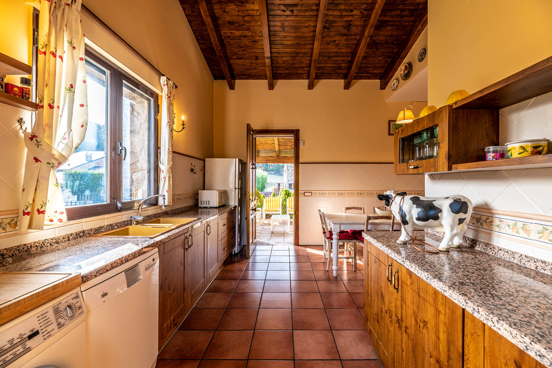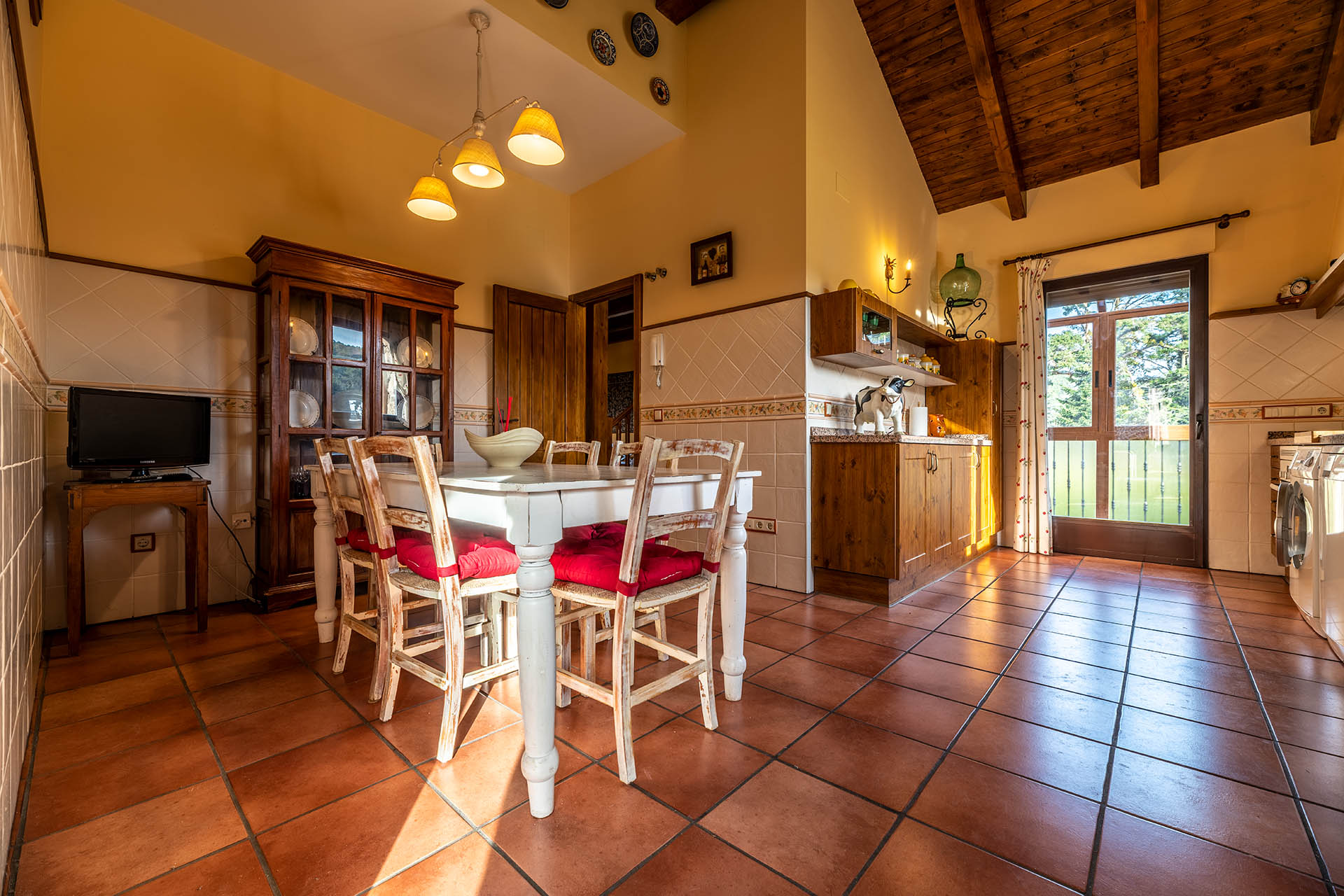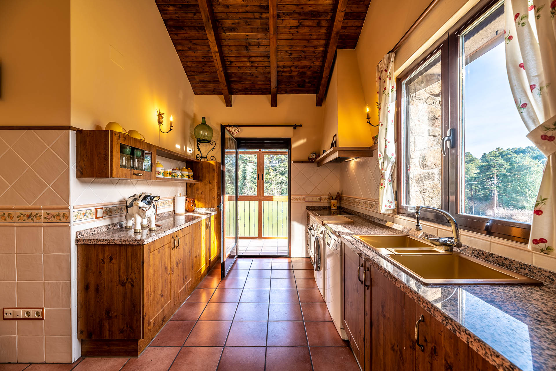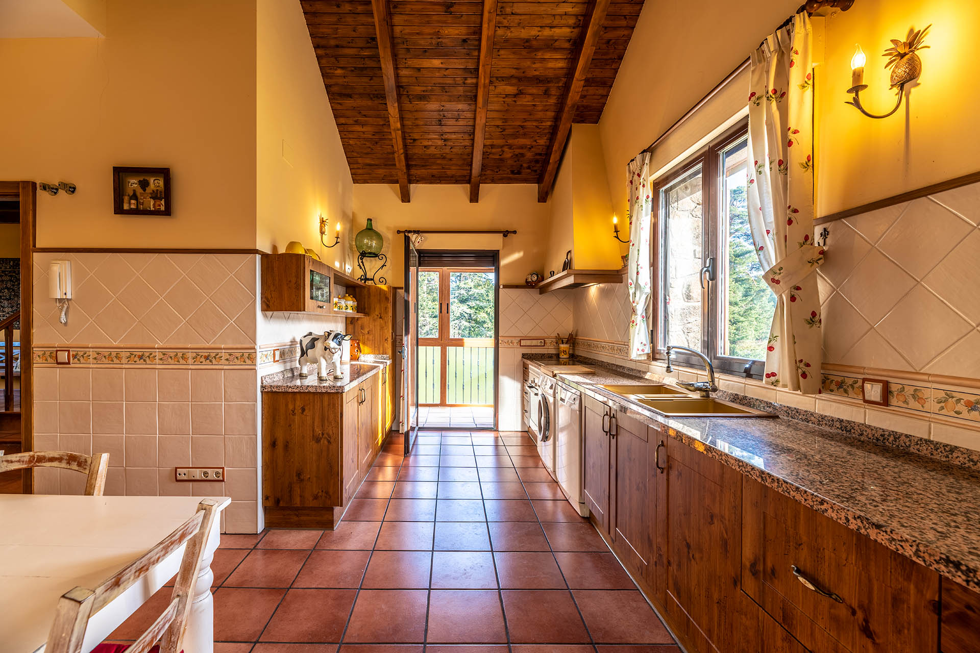En esta misma planta nos encontramos LA COCINA, sí en mayúsculas. Una cocina de 40m2 de diseño alemán (Schmidt). Con techos de 4 metros de altura, esta espaciosa cocina, será un lugar idóneo para los/las cocinillas de la casa. Y es que, poder preparar un suculento plato mientras divisamos las montañas será todo un lujo en Mayúsculas.