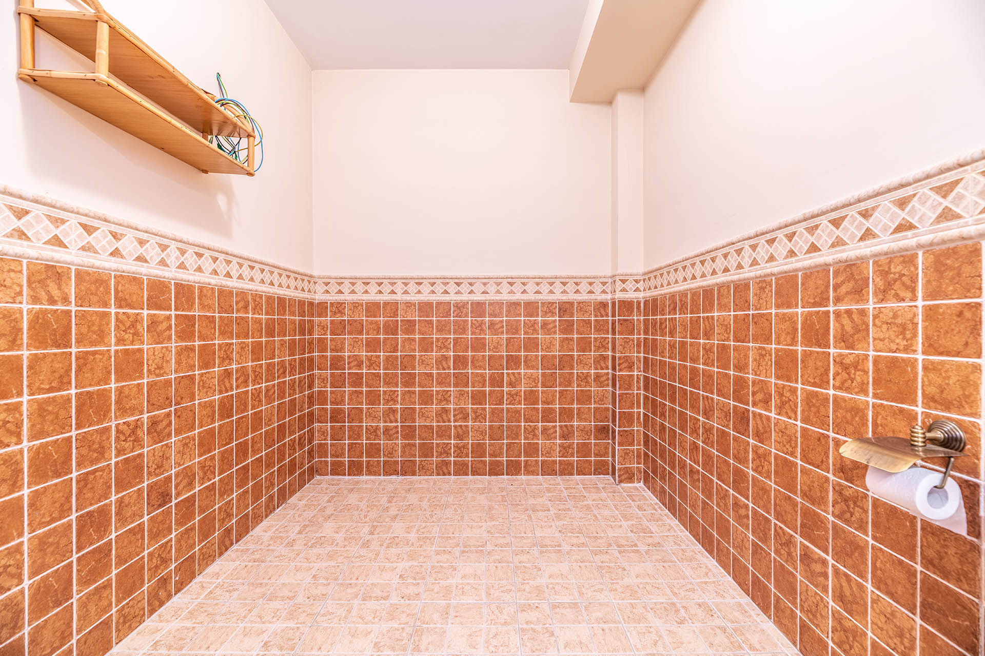 En la cocina se encuentra otro acceso a la vivienda, que por tanto comunica con el porche. Aquí también tenemos un espacioso tendedero y zona de almacenaje de utensilios de limpieza.